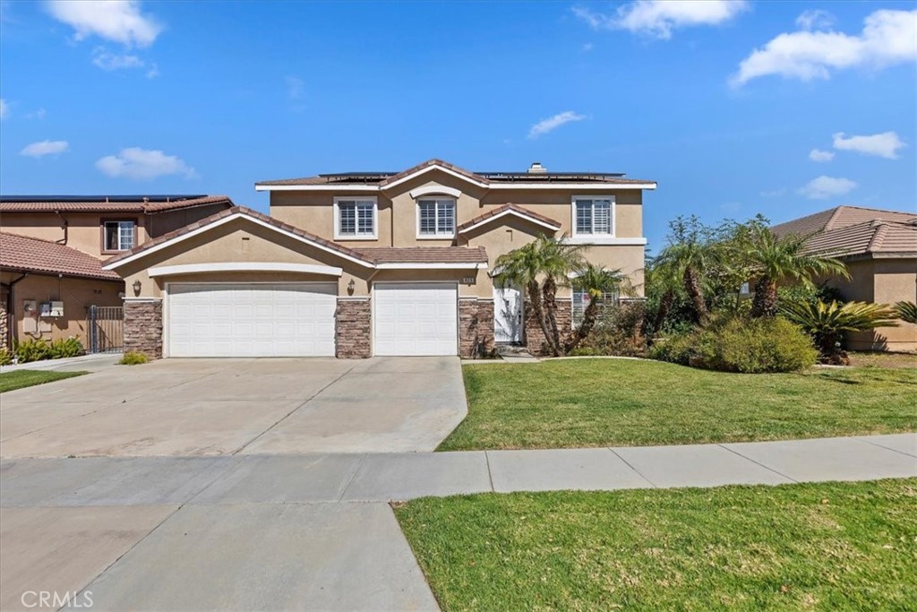 Beautiful traditional home in one of the most sought-after locations, just 10 minutes from the Orange County border and in the best school district. Offering 2,762 square feet of living space, this spacious residence features five spacious bedrooms and three bathrooms. The island kitchen is a standout, showcasing gorgeous granite countertops, a travertine backsplash, white cabinetry, a 48-inch Thermador refrigerator, stainless steel appliances, a walk-in pantry, and upper and lower cabinet accent lighting. Downstairs includes a formal living room and dining room, along with a spacious family room highlighted by an upgraded mantel and granite fireplace surround—perfect for gatherings and everyday living. A stunning wrought iron staircase leads upstairs to five bedrooms and two bathrooms. The entire upper level features wood flooring. The primary suite offers volume ceilings and captures panoramic city light and mountain views. The primary bath includes dual sinks, a soaking tub, separate shower, and a large walk-in closet. Additional features include plantation shutters, ceiling fans, solar, a three-car garage, and a beautifully maintained backyard with a pergola, guava tree, and two storage sheds. Ideally located near parks, schools, shopping, Skyline Trail and dining—with no HOA. Proudly offered by the original owners, this home has been exceptionally well maintained and is move-in ready.