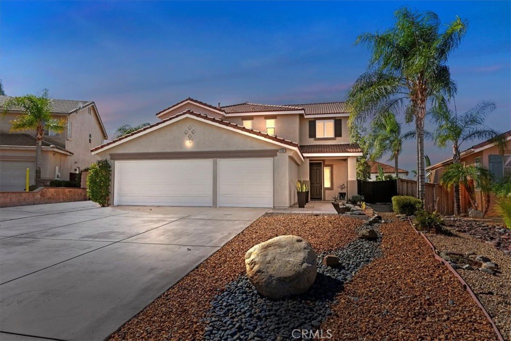 Fantastic Pool Home Opportunity! This beautifully maintained home features fresh exterior paint, drought-resistant front yard landscaping, and RV parking with double gates. Inside, you’ll find dual pane windows with shutters throughout and a great floor plan that blends comfort and style. The upgraded kitchen offers quartz countertops, modern cabinets, and an island that opens to the family room with a cozy fireplace. There’s a convenient bedroom and full bathroom on the first floor. Upstairs, the primary suite includes a walk-in closet, and the guest bathroom has been updated with new cabinets, countertops, and a walk-in tile shower. You’ll also find a loft/office area and a convenient upstairs laundry room. The garage is fully finished with drywall, built-in cabinets, epoxy flooring, and its own A/C system—perfect for a workshop, gym, or hobby space. Enjoy entertaining in the backyard with an Alumawood patio cover, a recently resurfaced pool and spa, and a relaxing fire pit area. Even all the pool equipment has been replaced! Located in a great community close to shopping, restaurants, and more—this home has it all!