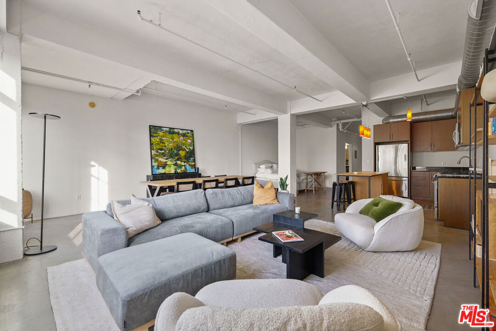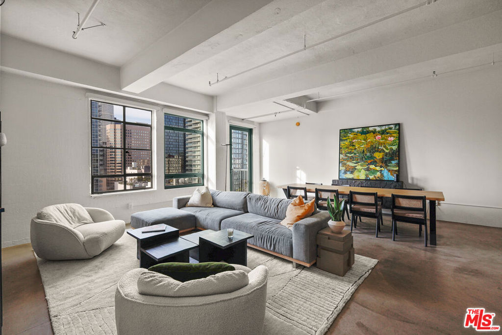 High above on the 11th floor at the iconic and historic landmark Eastern Columbia building is a beautifully maintained LIVE/WORK loft w/ rare balcony. The stunning Art Deco building was designed by Claud Beelman and owners benefit from the coveted historic Mills Act contract that offers up to 70% off annual property taxes. This spacious and bright 1030sf open plan loft features tall ceilings, concrete floors, and massive west-facing windows that let in an abundance of natural light. The flexible space allows for easy entertaining and creativity. Enjoy city and sunset views of downtown from a private balcony off the living area, unique to only a few lofts. The kitchen features stainless steel appliances, there are two spacious closets near the entry, one with built-ins, and W/D unit inside. The Kelly Wearstler designed bathroom features a soaking tub with glass enclosure. Central heat and AC throughout. 1 covered parking space in the attached garage is included with the unit. HOA Dues include parking, water, trash, gas. The building has recently undergone a stunning Art Deco tile restoration of the exterior, making it even more breathtaking. The Eastern Columbia has a stunning rooftop pool, sun deck, spa, and fitness center with breathtaking views of DTLA, designer lobby with a 24/7 reception desk and security, courtyard, dog area, additional laundry facilities and attached parking garage. Within blocks to everything including Whole Foods, Fashion District, Orpheum, Proper and Hoxton hotels, Metro, The Broad, IL Caffe, Mykita, Cliftons, Cabra, Caldo Verde, Zinque, Rosso Blu, Walt Disney Concert Hall, The Conrad, The Bloc, Fashion District, City Market South, Grand Central Market, and more.