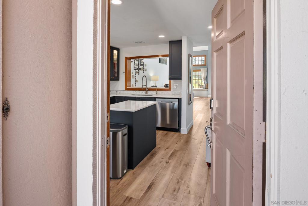 Beautiful single-story home in the highly sought-after Castle Creek community featuring golf course and mountain views. This light-filled residence offers vaulted ceilings, solid flooring throughout, and a thoughtfully designed layout with two bedrooms and two bathrooms. The fully remodeled kitchen features quartz countertops, stainless steel appliances, and modern finishes. The primary suite includes a walk-in closet with storage and direct patio access. The versatile floor plan separates the primary bedroom from the second bedroom and bath, making it ideal for guests, a home office, or a roommate setup. Enjoy relaxing on the private patio overlooking Castle Creek Golf Course or from the charming window seat inside. Additional features include a single-car garage with laundry and an additional dedicated parking space. Located just across from the community pool in a resort-style community where the HOA covers water, sewer, and common area landscaping. Convenient access to I-15 offers an easy commute to Temecula wine country or San Diego.