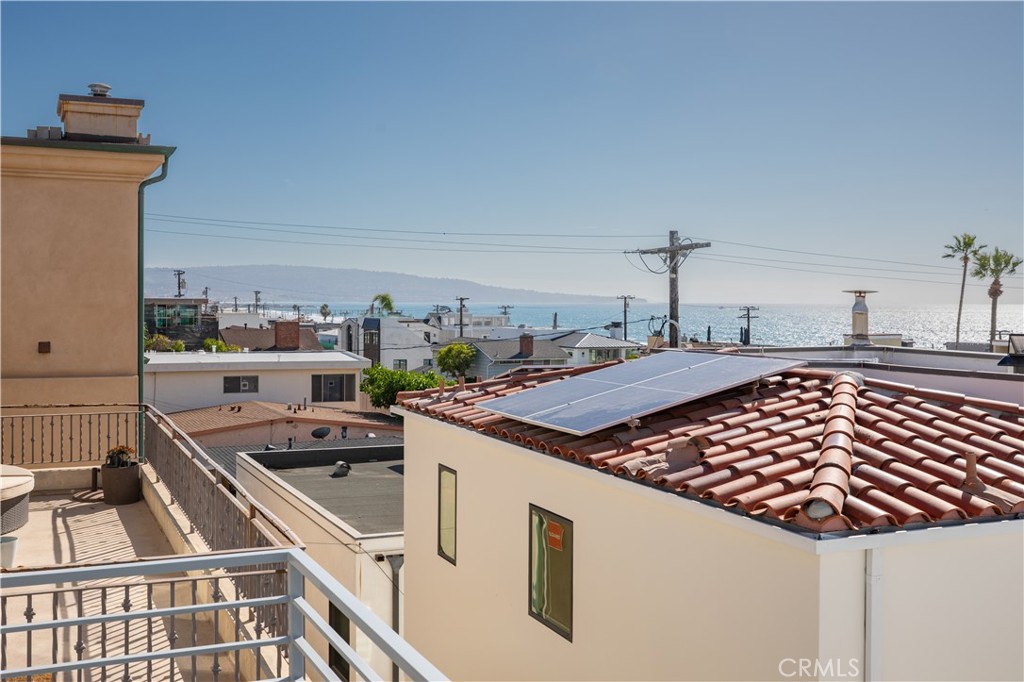 Situated just one block above the white sand beaches of Manhattan Beach and the Pacific Ocean, this stunning 95% new construction custom townhome offers 2,143 square feet of thoughtfully reimagined living space with 3 bedrooms and 3.5 baths. Extensively rebuilt with all new windows, doors, cutom cabinets. plumbing, electrical, fire sprinkler system, mechanical systems, heater, and A/C, the home blends modern engineering with refined coastal design. The top floor was structurally redesigned by an engineer, incorporating steel beams to create a dramatic, fully open great room. This expansive space showcases panoramic, unblockable ocean, Palos Verdes, Catalina Island, and sunset views from both the interior and the 24’ x 7’ deck, finished with custom exterior porcelain tile for seamless indoor-outdoor living. The gourmet kitchen features Thermador appliances, Dolamite quartz countertops and peninsula with bar seating, and designer lighting fixtures throughout. A fireplace anchors the living area, while custom modern glass railings enhance the clean architectural lines and preserve the views. Wide-plank 9” white oak flooring runs throughout, complemented by curated designer tile selections in each bathroom. The standing seam metal roof and custom modern sectional wood garage door add distinctive architectural character and durability. The home’s location on Bayview is especially unique. Positioned on the apex of a convex-shaped block between First Street and Homer, this property enjoys exceptional natural light, enhanced privacy, and maximized view corridors. The main entry level includes direct access from the two-car garage and a luxurious primary suite retreat. Designed as a true sanctuary, it features a spa-inspired bathroom, fully built-out custom closet, and its own stacked washer/dryer. From here, it’s just one flight up to the spectacular great room and view deck. On the lower level, two additional bedroom suites offer beautifully finished bathrooms, custom built-in closets, and access to a private rear patio. Ideally located between the Manhattan Beach Pier and the Hermosa Beach Pier, you’re just a casual half-mile stroll north to downtown Manhattan Beach’s renowned shops and dining, and approximately one mile south to Hermosa Beach’s vibrant downtown scene. This home embodies the quintessential Manhattan Beach lifestyle — park your car, take in the fresh ocean breezes and walk everywhere.