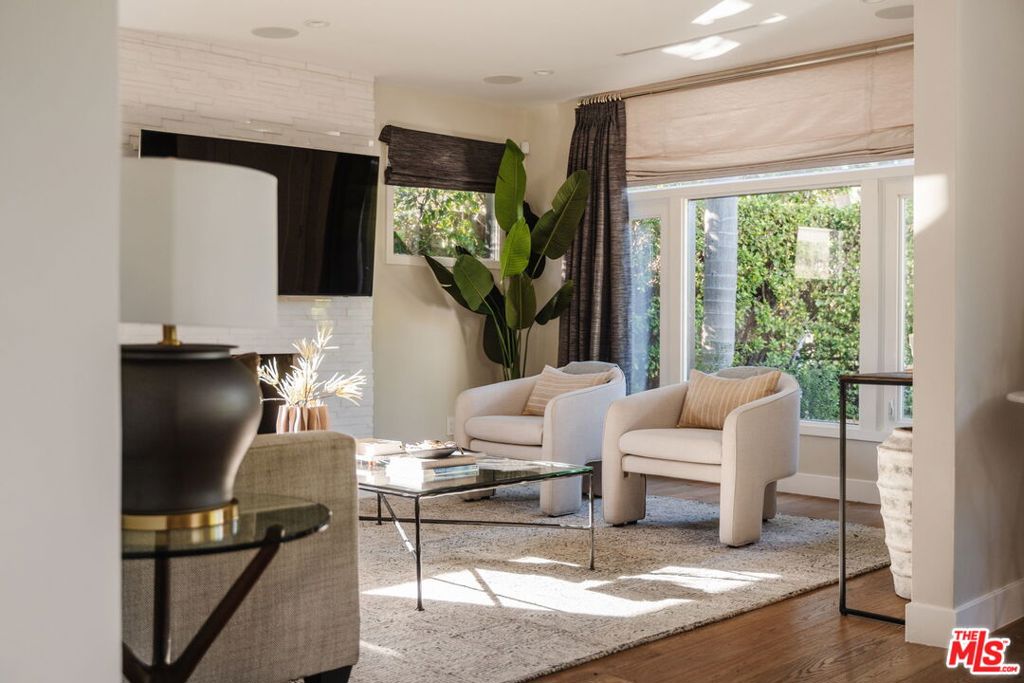 Set along a quiet, tree-lined street in a sought-after pocket of West Hollywood, this fully gated Spanish Revival has been thoughtfully reimagined through a comprehensive renovation completed between 2020 and 2024. A newly added second level and meticulous modernization of the main residence, guest house, and surrounding grounds bring contemporary ease to the home’s enduring architectural character. A hedged front garden creates a graceful approach, opening to interiors defined by warm wood floors, generous natural light, and a calm, cohesive palette. The living spaces unfold with quiet refinement — from the inviting living room to a sunlit dining area and a beautifully appointed kitchen designed for both everyday living and effortless entertaining. Caesarstone surfaces, Sub-Zero and Wolf appliances, and abundant pantry storage anchor the space with understated sophistication. Advanced home tech is seamlessly integrated throughout, including Sonos surround sound, Lutron lighting, smart climate control, dual tankless water heaters, automated pedestrian and driveway gates, and a security system with perimeter cameras. The main residence offers three en-suite bedrooms, including a serene primary suite on the main level. Here, sliding doors open directly to the garden, while a custom walk-in closet and spa-inspired bath — featuring a glass-enclosed rain shower and dual floating vanity — create a tranquil retreat. Designed with Southern California living in mind, the backyard unfolds as a series of intimate outdoor moments. Two custom pergolas frame areas for dining and lounging, while a turf lawn and tall privacy fencing create a secluded setting for entertaining. A fully renovated detached guest house — with its own designer kitchen, living space, bedroom, and full bath — offers flexibility for extended stays, a creative workspace, or potential rental income. Moments from the energy of West Hollywood’s entertainment corridor and world-class dining and shopping along Beverly Boulevard and Melrose Avenue, the home offers a rare balance of architectural presence and quiet residential charm in the heart of the city.