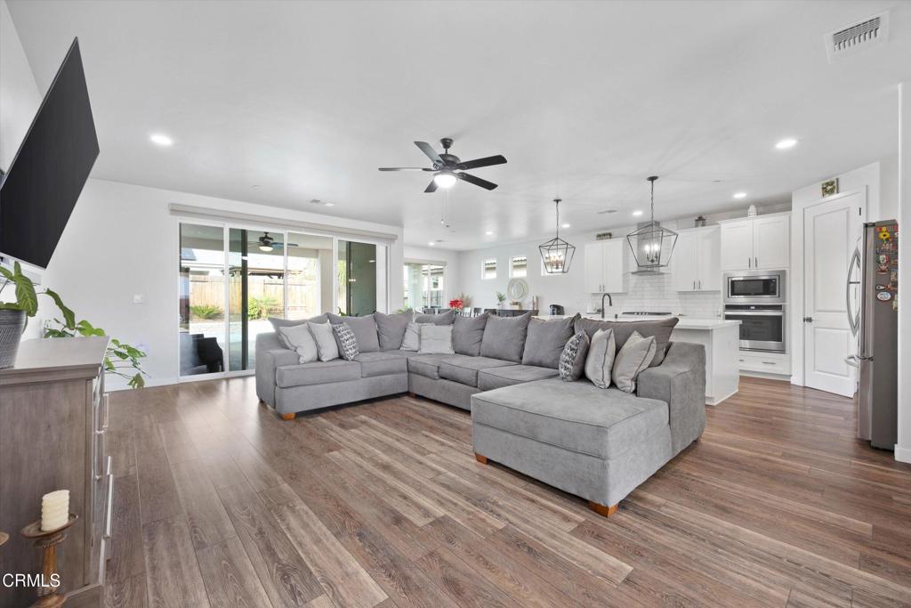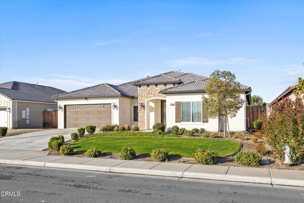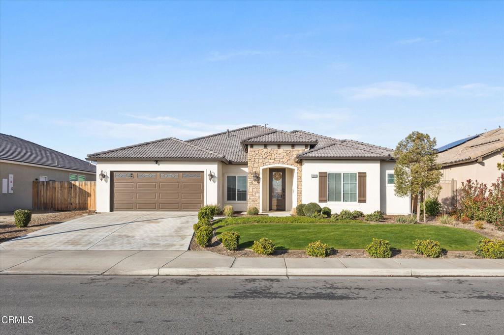 Luxury living awaits in this 2021 built, one story home. A true gem, nestled within the coveted Enclave community in Southwest Bakersfield. Boasting 2,429 square feet of living space and a split-wing floorpan featuring 4 spacious bedrooms and 3 bathrooms. All with walk in closets and high ceilings. Primary suite features two walk in closets, spa-like shower and dual vanities. Enjoy an inviting open floor plan seamlessly connecting the living room, kitchen, and dining area, ideal for entertaining guests. The gourmet kitchen with elegant quartz countertops and stainless steel appliances. Benefit from the paid-off solar panels for energy-efficient living. Relax in your own backyard paradise with a saltwater pool with a captivating cascade water feature and a California patio perfect for enjoying a hot afternoon and evening lounging. New flooring throughout and painted interior all in 2023. No HOA. Plus, no immediate neighbor across the street…Truly a must see to appreciate.