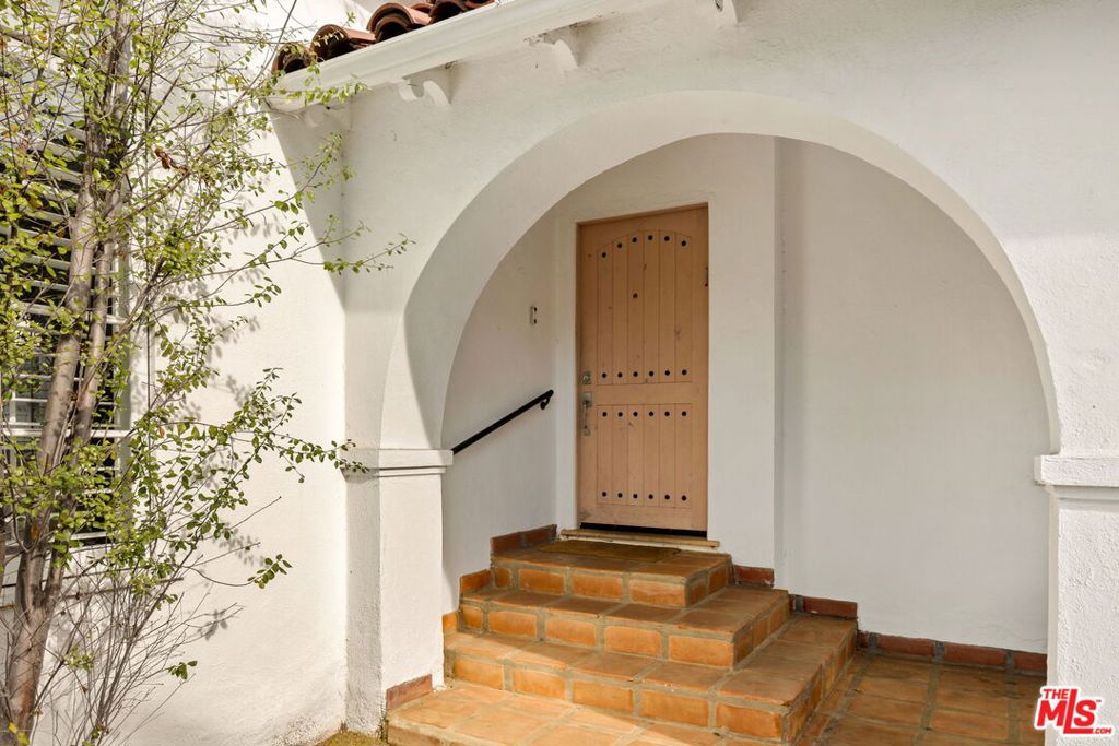 Privately gated in the coveted South Carthay HPOZ, this beautifully updated Mediterranean home offers classic character with contemporary comfort. Upon entering, an elegant archway sets the tone and leads into the sun-filled living room, featuring great natural light, a cozy fireplace, and rich coffered ceilings that highlight the home’s architectural charm. Light-filled living spaces continue throughout with vaulted ceilings and skylights, while sliding glass doors connect the dining area to outdoor entertaining. The modern chef’s kitchen includes a center island, stainless steel appliances, ample cabinetry, and a breakfast nook, ideal for daily living and hosting. The serene primary suite offers a private retreat with sliding glass doors opening to the backyard, a wall of custom built-ins, a large walk-in closet, and a sophisticated dual vanity en-suite bath. Generous guest bedrooms, a dedicated laundry room, and a California basement providing additional storage complete the interior. Outdoors, the lush backyard is framed by mature trees for privacy and features a large covered patio ideal for al fresco dining and entertaining. A converted garage adds valuable flex space- perfect for a home office, creative studio, or gym – all set in an unbeatable central location moments from Beverly Grove, Miracle Mile, Mid-Wilshire, and Beverly Hills.