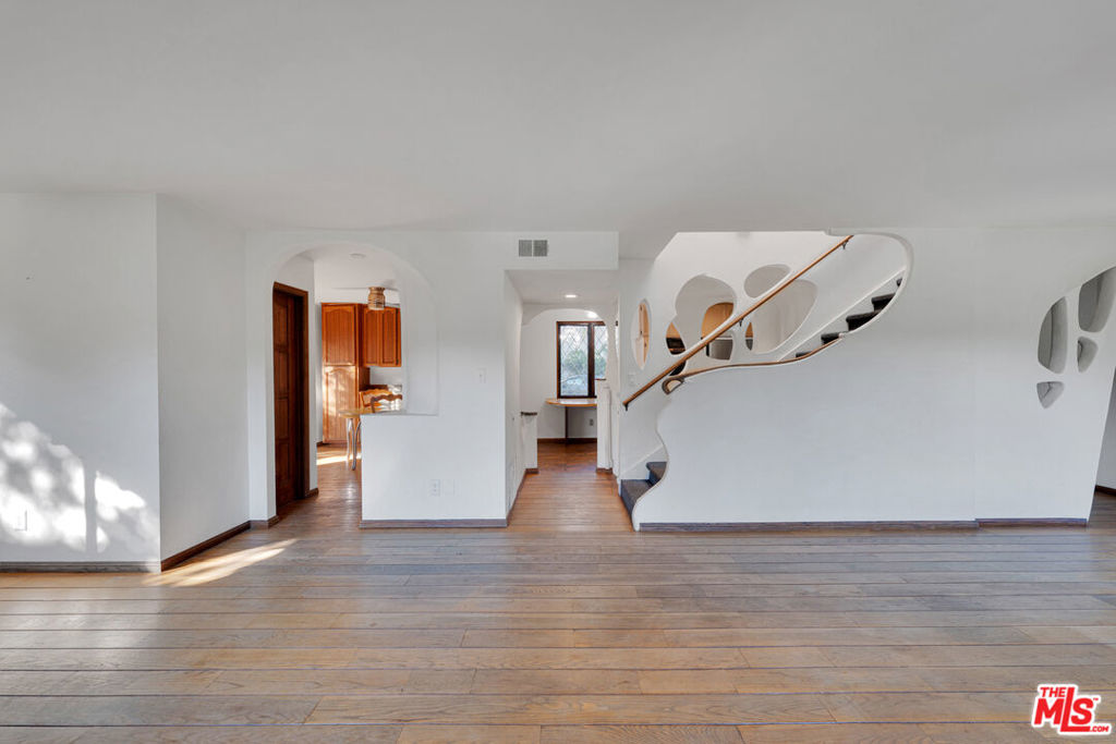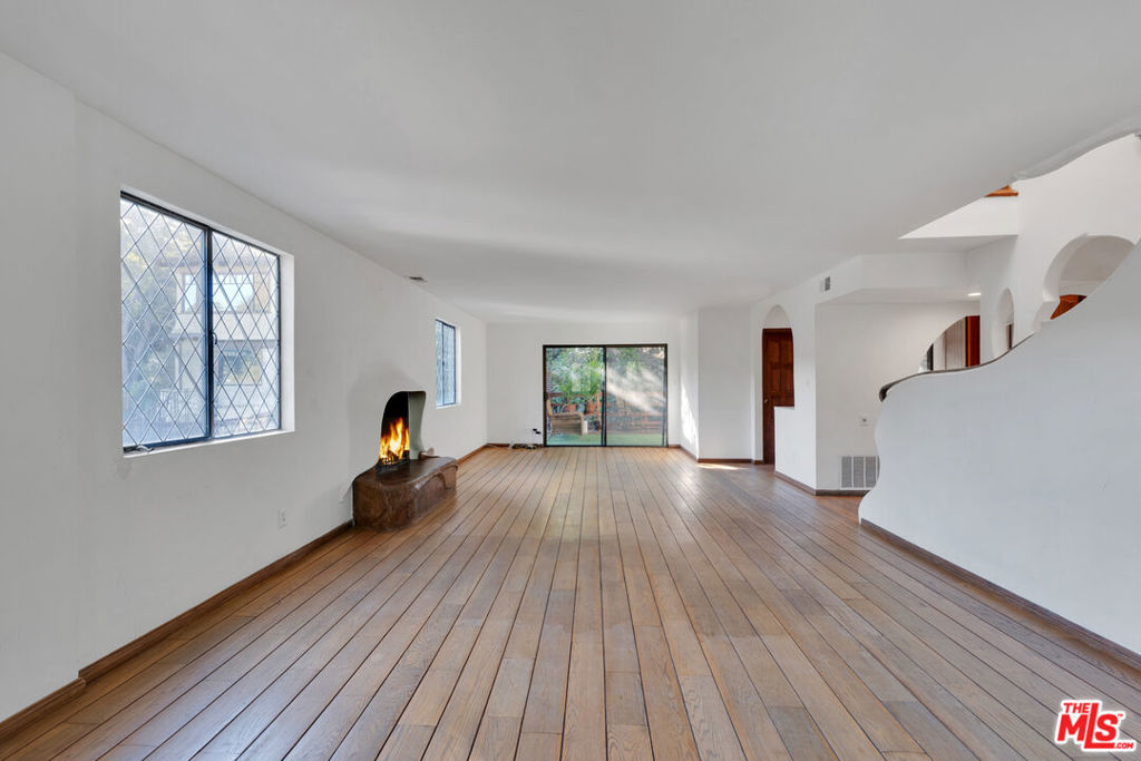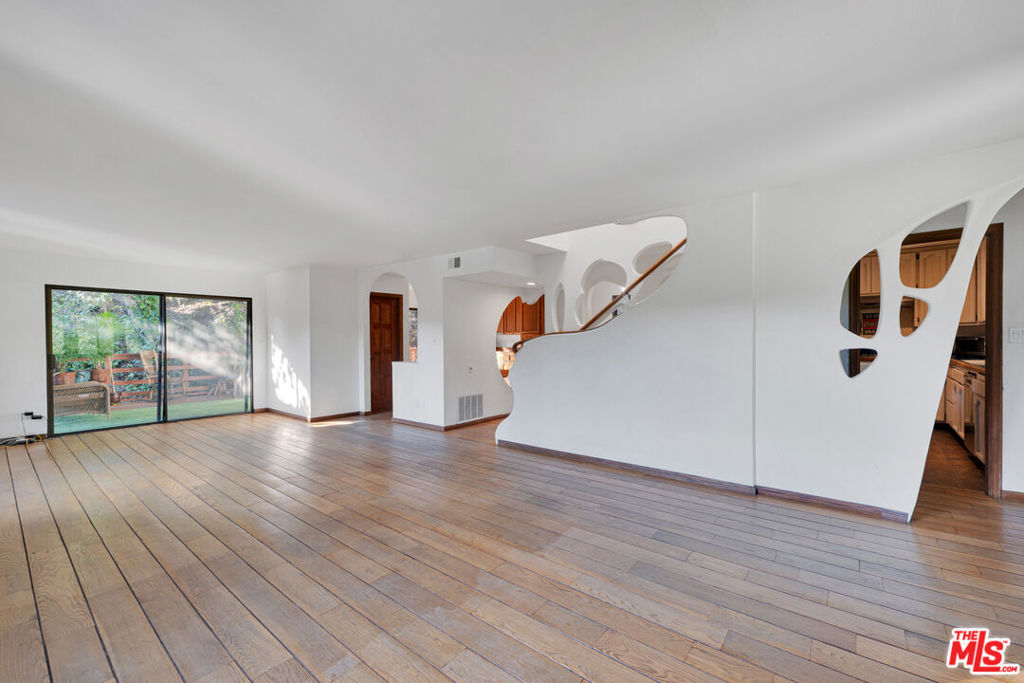 This unique and spacious 2600 square foot family home is a rare find in Beverly Glen, tucked away at the top of quiet and serene Hebron Lane. The home has 4 bedrooms and 3.5 baths, spread over 3 stories, with canyon and mountainside views. The second level is the main living area, with a hand-carved plaster fireplace and other artisan details, as well as original 3/4th-inch oak wood floors and original oak cabinetry. Throughout the home are custom-made leaded glass casement windows, also original. A huge outdoor patio extends from the living room to the kitchen’s dining area. On the top level sits the primary bedroom, complete with en-suite bath and walk-in closet. There are two additional bedrooms upstairs, multiple linen closets, and another full bath. The first level is a versatile space providing an additional living area, the fourth bedroom with 3/4 bath, and the ability to have its own separate entrance. This is perfect for an in-law suite, an office, or an art or wellness studio. The property is located in the fantastic Warner Elementary school district. It’s a beautiful space with tons of potential, in need of some TLC. The property sits on two lots, 10440 and 10446 Hebron Lane.