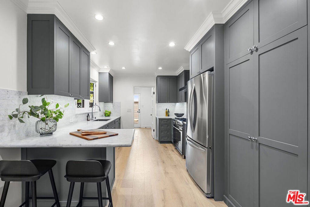 Welcome to a fresh lifestyle offered by this charming three-bedroom, three-bathroom unit situated on a tree-lined street in one of LA’s historic neighborhoods, South Carthay, centrally located to all and dubbed one of the city’s best kept secrets. This beautiful home offers excellent curb appeal with meticulously manicured landscaping and a grassy front lawn. Inside, the remodeled unit is quite spacious and has been updated with all of the finishes to please the modern tenant. Wide-plank wood floors flow in the light-filled living room with fireplace and leaded picture window framing lush greenery. The updated kitchen includes high-end stainless-steel appliances, an elegant backsplash, ample prep space, and an abundance of cabinetry and storage space. Stackable laundry is located nearby, and the formal dining room is perfect for entertaining. Bedrooms are spacious, and the primary suite features a dual-sink vanity and oversized shower. Outside, savor al-fresco meals below an enchanting trellis in the outdoor dining room appointed with a built-in barbecue amidst plenty of patio lounging space. Enjoy close proximity to Mid-Wilshire’s world-class museums and attractions, The Grove, Original Farmers Market, the Beverly Center, and the iconic shopping and dining of Beverly Hills. The 10 Freeway is also nearby, providing access to the Westside and so much more. This is your chance to experience life in Los Angeles as it was meant to be! Available immediately. Note: street parking only.