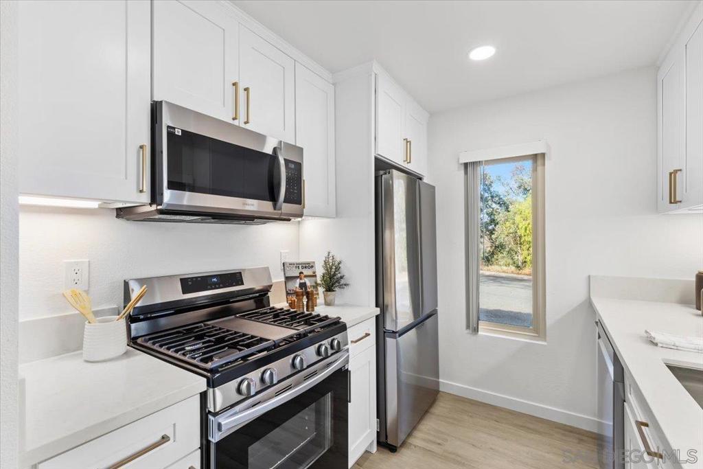 This centrally located Mira Mesa condo has all the upgrades you’re looking for! Extensive remodel including a full kitchen with new stainless appliances, upgraded flooring throughout, brand new bathrooms with custom tile work, new cabinets, fireplace for cozying up, and an ample patio for a quiet retreat or extended dining. Desirable end unit along a peaceful tree lined street. This home has dual primary suites, 1 assigned parking space and ample street parking for guests. Come see!