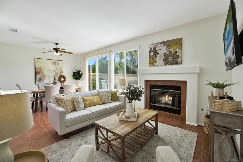 Welcome to this beautifully maintained townhome in the highly sought-after community of La Cresta in Sabre Springs. This desirable two-story floor plan features dual primary suites and is ideally situated within the complex, backing to serene canyon views with no neighbors behind you. The cozy living room with a gas fireplace flows seamlessly into the dining area, creating a warm and inviting space. The spacious kitchen offers additional space for a kitchen nook. Kitchen upgrades include rich Italian walnut cabinetry, Corian countertops, and stainless steel appliances — all included along with washer & dryer. Additional home improvements include fresh interior paint, a newer furnace, A/C, water heater, and double pane vinyl windows. The lower level features tile flooring, with carpeting on the staircase and throughout the upper level. Enjoy outdoor living in the large, private enclosed backyard, complete with a raised deck and a grass lawn with a sprinkler system — perfect for relaxing or entertaining. Convenient attached two car garage. Residents enjoy resort-style amenities, including two pools, hot tubs, and covered picnic areas. Location, location, location! Close to shopping, dining, and walking trails, with convenient freeway access. Situated within the highly acclaimed Poway Unified School District. Solar panels are allowed; needs to go through HOA process for approval.