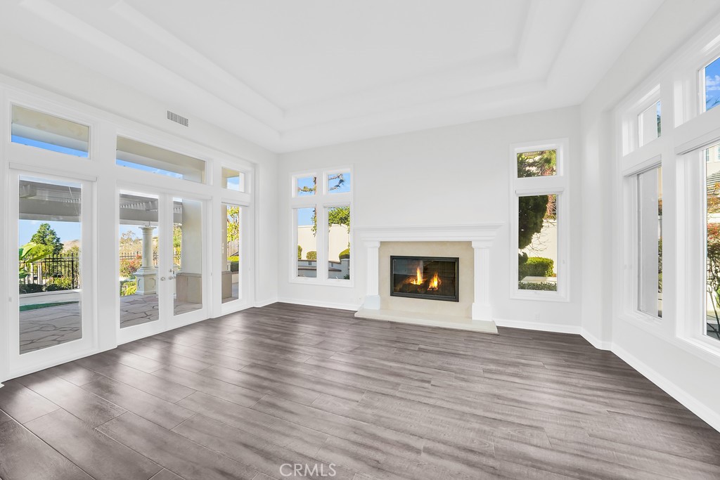 Panoramic, west-facing city-lights and rolling hills views at premium location on single loaded street facing tree-lined grassy green belt with four bedrooms (all with en-suite bathrooms) plus spacious loft and 3-car garage with oversized driveway *** Soaring cathedral ceilings and fully remodeled with all new interior and exterior paint, new luxury vinyl flooring throughout, all new LED recessed lighting, all new dual heating and AC systems and more !! *** Large and bright kitchen includes all new, premium Jennair stainless steel dual convection ovens, dual dishwashers, wine chiller, five burner built-in cook top with rising 4-stage venting system, new built-in refrigerator, new solid quartz island, countertops and full backsplash plus a walk-in pantry *** Large primary bedroom comes complete with romantic fireplace, four French doors leading to private balcony with panoramic views, dual closets and remodeled bathroom with new quartz countertop, new soaking tub, large shower enclosure with floor-to-ceiling quartz, new frameless glass door, and dual shower-heads (including hand held wand) *** Very private and picturesque backyard includes new built-in BBQ (plus clean up sink), pond with tranquil waterfall, fire-feature and more !!