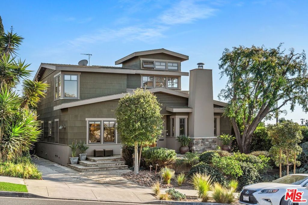 Perfectly located in Sunset Park, this extensively remodeled and expanded 4-bedroom, 3.5-bath home combines modern luxury with timeless Craftsman charm. The updated chef’s kitchen features a butcher block island, side-by-side freezer and refrigerator, and Viking appliances, flowing into a bright dining room and opening to the back patio. The main level includes 2 bedrooms, a full bath, and a powder room. Upstairs, the primary suite offers a spa-like bathroom with a steam shower and a large terrace with stunning ocean views. The backyard, perfect for entertaining, features a private garden, lounge area, dramatic fountain, and space for a pool. The detached garage, now a permitted flexible space with a half bath, is ideal for a gym, office, studio, or ADU. This unique home, “Two Oaks on Pine,” is a true Sunset Park gem.
