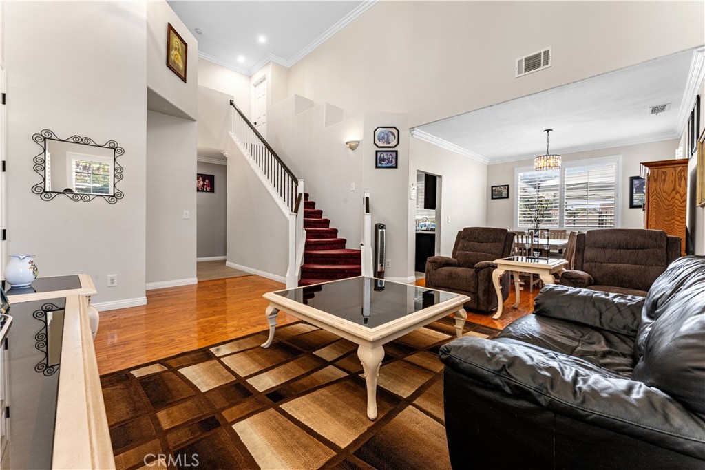 This beautiful 4-bedroom, 3-bathroom pool home sits on a generous 10,029 SF lot, offering around 2,294 sq. ft. of living space. The home combines flexibility and potential, with plenty of room to grow. The first floor features a spacious living area, dining room, a modernized kitchen with new appliances, an upgraded den, one bedroom, and a full bathroom. Upstairs, there are 3 bedrooms, 2 bathrooms, a loft, and a laundry room. Sliding doors from the updated kitchen open to an entertainer’s backyard, complete with a large covered permitted patio and a bar for gatherings. A step-down leads to a basketball court and a sparkling pebble tech pool with recently updated equipment. The expansive backyard also includes RV parking and vibrant plumeria trees. Conveniently located with a park across the street, this home offers larger-than-average lots, creating a spacious neighborhood feel. With great curb appeal and proximity to parks, shopping, and dining, this home is a must-see!
