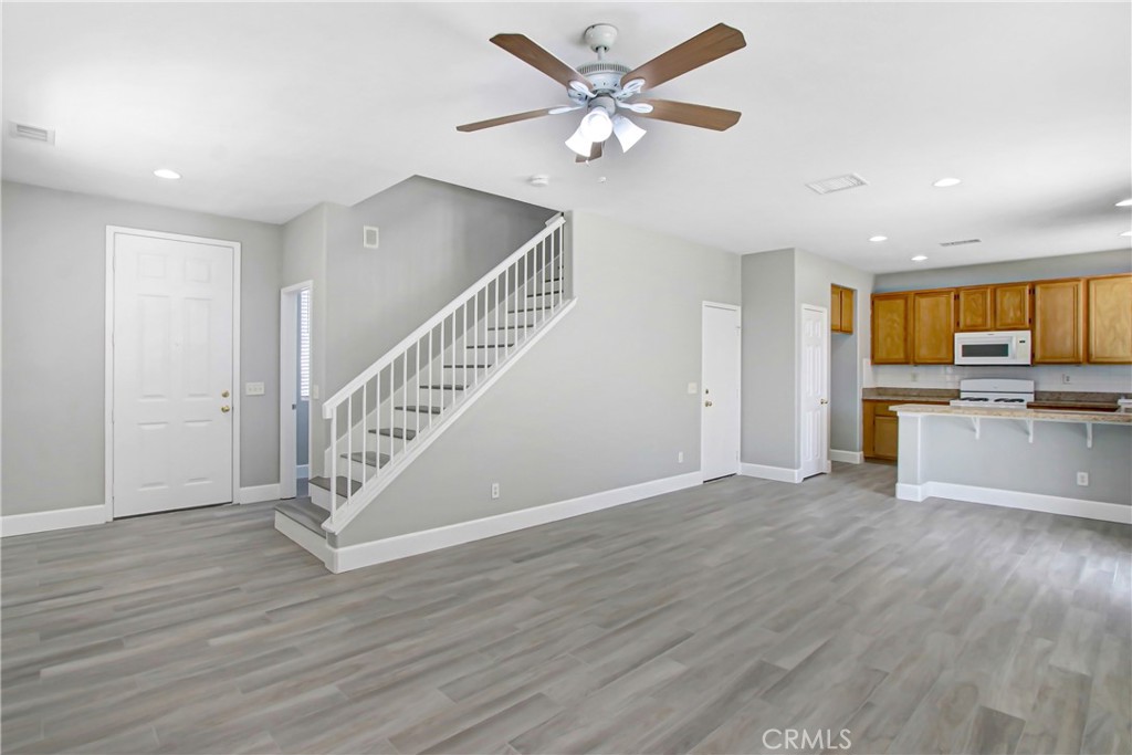 Freshly updated and move-in ready! This beautiful home features fresh interior and exterior paint, brand new blinds throughout, upgraded plank tile flooring downstairs and in wet areas, and new LVP flooring upstairs for a clean, modern feel. The spacious floor plan offers three large bedrooms and two full bathrooms upstairs, including a primary suite with an oversized walk-in closet. The indoor laundry room is conveniently located upstairs near the bedrooms for added convenience. All bathrooms have been remodeled. Enjoy the low-maintenance backyard with all concrete and a brand new covered patio with recessed lighting, perfect for outdoor seating and entertaining. Front yard gardening service is included, making outdoor upkeep simple and convenient. Located in the highly desirable Etiwanda School District, serving Terra Vista Elementary, Etiwanda Intermediate, and Rancho Cucamonga High School (Chaffey Joint Union High School District). Conveniently located near parks, shopping, dining, and major commuter routes.