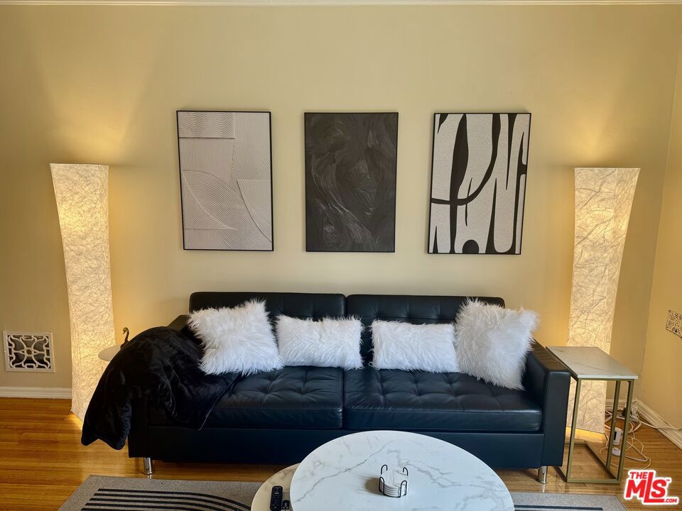This huge (1250SF) light filled 2BR home is located on a picture perfect street just 2 blocks to Beverly Hills in West Los Angeles, (Pico Robertson area). Available month to month or longer term, this property is near the intersection of Pico and La Cienega, the property has an amazing 89/100 walkscore and is walkable to restaurants, errands, shopping, multiple parks, schools, post office and houses of worship! It is the ideal place for any person or group wanting to feel the comfort of a home with vintage charm. Pet friendly with $100/mo/pet pet rent. This ground floor front unit is in a classic 1937 French Norman 4-plex and has amazing light because 3 sides of the unit have windows. The home has an extra large living room, formal dining room, original newly refinished hardwood floors, charming built ins, vintage fixtures and in unit laundry. Modernized kitchen includes new dishwasher, built in microwave, quartz countertops, new flooring, full size refrigerator and some new cabinetry. Bathroom has separate tub and shower with granite vanity with dual sinks. Handsome garden style setting with shared patio. Has front and rear entrances. Plumbing is all copper so unit has excellent water pressure. Available furnished as shown for $3999/mo. Bedrooms- Bedroom 1: 1 Queen-size bed- Bedroom 2: 1 King-size bedLiving Room-Smart TV-Queen Sofa BedKitchen and Dining* Fully equipped kitchen * Keurig and regular Coffee makers, built in microwave, oven, toaster oven, blender, full size fridge and stove* Dinnerware, flatware, pots, pans, and cooking utensils * Dining table seats 8 guests