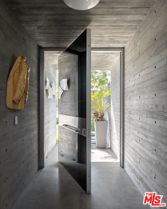 Tucked away on a tranquil cul-de-sac off lower Tigertail, the “Getty View Residence”, is a striking example of contemporary design crafted by Abramson Architects and constructed in 2019. This architectural gem showcases impeccable craftsmanship, unparalleled attention to detail, and solid construction , ensuring a residence of enduring quality. Spanning 3 levels, the journey into this exceptional home begins with a dramatic entrance – crossing a serene reflecting pool and passing through an impressive pivot door. The entry level offers a temperature- controlled wine room, oversized 3-car garage, an elevator connecting all 3 levels, half bath, extensive storage, and versatile bonus spaces ideal for a home gym, theatre or creative studio. Ascend a graceful staircase of wood and terrazzo to reach the main level where breathtaking views and design meets effortless functionality. Your first impression is one of expansive openness, as large retractable doors flood the space with natural light. Shielded for privacy and energy efficiency by a striking aluminum louver facade, this level offers a sprawling great room featuring a landscaped atrium replete with a melaleuca tree. The open-concept kitchen equipped with top-tier appliances and dining and living rooms lead out to the swimming pool and lush gardens. Auxiliary rooms encircle the core of the home and include a spacious office, family room, and a fourth bedroom. A floating staircase leads to the top level and is home to the primary suite, which offers views of the Getty. The suite includes light-oak flooring, a marble-clad fireplace, cozy reading nook overlooking the garden, a luxurious bathroom with a soaking tub, and large custom closet. Two additional en- suite bedrooms are connected by a brightly lit hallway. The award-winning garden captivates, offering a sanctuary of peace and serenity. There are various sitting areas, each providing a unique view of the vibrant flora and meticulously maintained paths. Strategically placed sculptures enhance the artistic ambience of the space. Designed for entertaining, the expansive open areas can comfortably host large gatherings. The fusion of nature with modern elements creates an unmatched environment for relaxation, celebration and reflection. A true sanctuary of contemporary elegance, this is a masterpiece of design and livability. Great value.