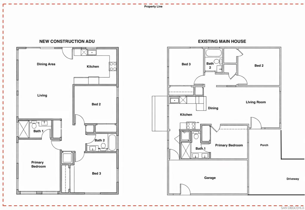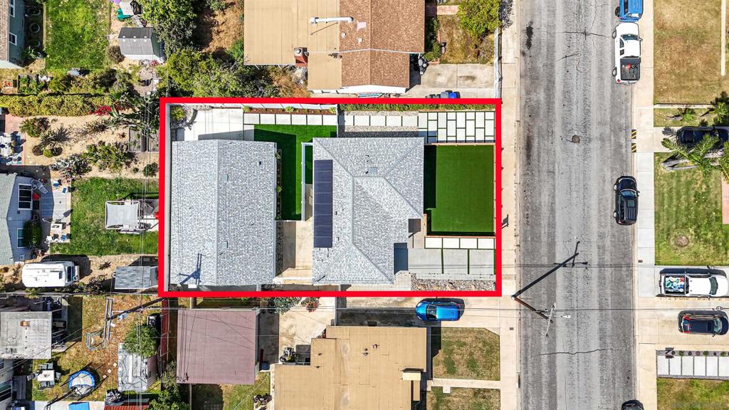 Two detached houses on one lot! LIVE IN ONE…STRONG RENTAL INCOME POTENTIAL for 2nd UNIT! 3 Bed 2 Ba 1200 ft ADU plus 3 Bed 2 Ba 970 ft main house. The rear NEW-CONSTRUCTION ADU is brand-new ground-up construction totaling approximately 1,200 sq. ft., featuring a modern great-room layout, high ceilings, its own private entrance, generous outdoor space, and a dedicated stackable laundry closet. Designed for comfort, privacy, and flexibility, the ADU functions like a standalone home while sharing utilities with the main residence. The front home is a fully remodeled 3-bedroom, 2-bath residence that was previously taken down to the studs and rebuilt with extensive upgrades throughout, including electrical, plumbing, roof, windows, flooring, doors, fixtures, and appliances. It offers an open-concept living space, a modern kitchen with pantry, a primary suite with dual-sink bath, indoor laundry, EV charger, new garage door, and fresh landscaping. Each residence enjoys its own private outdoor area and separate entrance. Utilities are shared between the two homes, but solar installed on the main house helps offset electricity usage for both units, providing long-term efficiency and cost savings. Located just minutes from the beach, shopping, dining, and schools, this property offers exceptional versatility—ideal for multi-generational living, owner-occupants seeking rental income, or investors looking for a high-quality dual-residence setup in a coastal community.