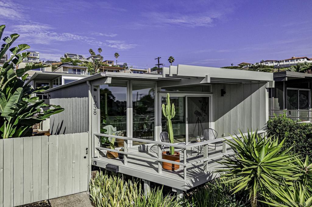 Seize this rare opportunity to own a stunningly renovated J. Herbert Brownell Compact Home! This mid-century modern gem is nestled in North Pacific Beach, just moments from the shoreline, vibrant shops, and dining in PB and Bird Rock. Expertly designed with expansive glass walls, the home effortlessly integrates indoor and outdoor living while maintaining a sense of privacy. Floor-to-ceiling windows fill every room with natural light and showcase breathtaking coastal views. This “lock-and-leave” property is an ideal retreat for vacation living. Recent upgrades include paid Solar and Tesla Powerwall, windows and doors, kitchen cabinets and appliances, washer/dryer, LVP Flooring, furnace, A/C, water heater, renovated bathrooms, low-maintenance, low-water landscaping, two car garage, refinished front deck and side entry decking.