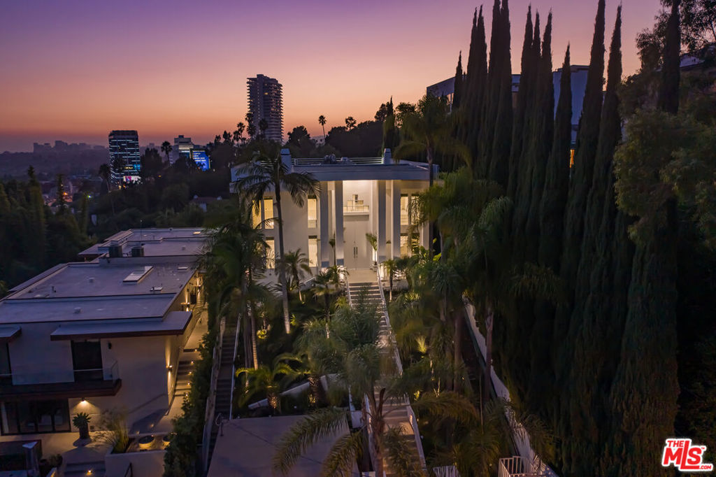 Nestled on a cul-de-sac just above the iconic Sunset Strip, this architectural masterpiece offers a breathtaking setting for both entertaining and everyday living. Unique in its timeless beauty, this 4 bedroom 5 bathroom home boasts panoramic views stretching from the Sunset Strip to the iconic downtown LA highrises. Step inside to discover an open and bright main level adorned with elegant marble floors throughout. The space seamlessly flows to an expansive deck, featuring a dazzling pool, and spa – perfect for soaking in the stunning city views. The luxurious primary suite is a private retreat, complete with a spa-like bathroom, a walk-in closet, and a balcony with breathtaking views. There are also three additional en-suite bedrooms, two-car covered garage parking, as well as three-car off-street. Gated, private, and secure. This is more than a house, it’s a lifestyle.