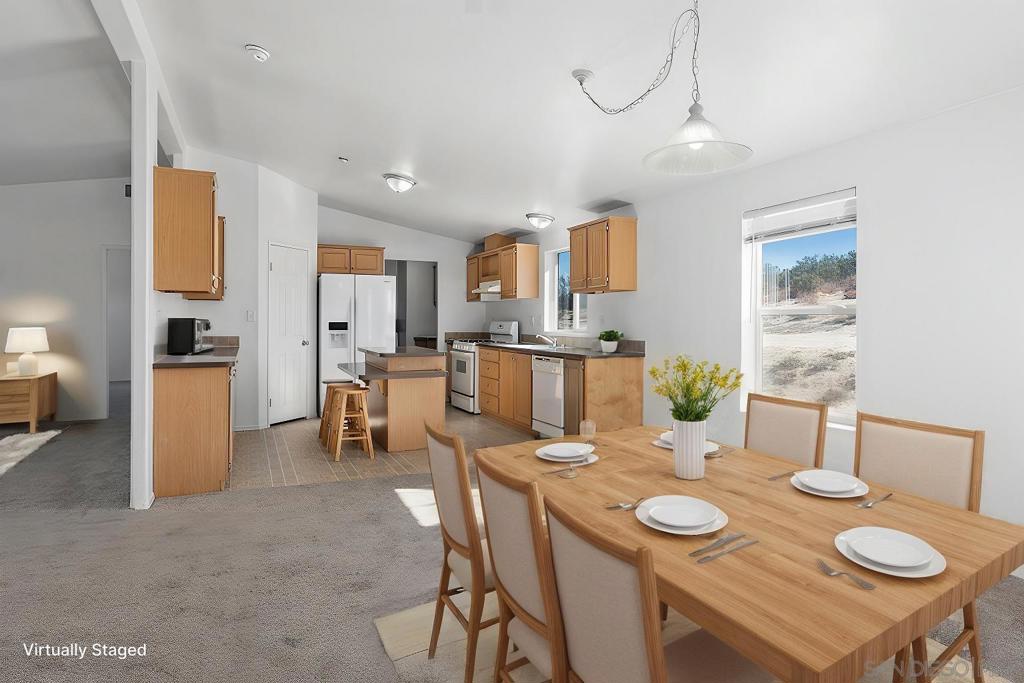 180 degree views for 30 miles in all directions. 4 bedroom, 2 bath, home that sports 1,782 square feet of home on 47.5 acres. Home is well maintained. The exterior is freshly painted and new doors added. The interior enjoys brand new carpet and is also freshly painted. Power is SDG&E, Septic is 1,500 gallons, strong well, large water tank, two propane tanks (one owned and one leased). generac generator, full central AC and Heating. The pictures with furniture in the home are virtually staged to show how nice this home might be. Also, this home qualifies for the USDA Rural Home purchase benefits along with VA, FHA and Conventional and Cash too. Super opportunity to create your estate on this 47 acre parcel with a great home just waiting for you. The Golden Acorn Casino is just 6 miles away and 5 1/2 of those miles are asphalt paved. 1/2 mile down the hill from you is a beautiful KOA (Kamp Ground of America) where friends and family could stay with their RV or gear and be close too. But the really most important thing is the home is 1/2 mile up the hill and you are very private with great expansive views. Lots of stars to see especially on the nights with no moon. The pictures with furniture in the home are virtually staged to show how nice this home might be. Also, this home qualifies for the USDA Rural Home purchase benefits along with VA, FHA and Conventional and Cash too.