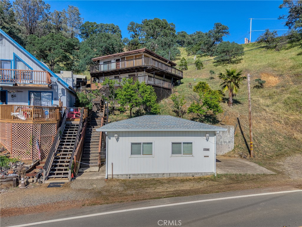 This beautiful lake property offers breathtaking views and includes a dock and boathouse garage conveniently located just across the street. The open concept layout features three bedrooms and two bathrooms, making it perfect as either a full time residence or a peaceful vacation retreat. Enjoy your mornings on the spacious decks with coffee or tea while taking in the scenic surroundings. Large windows throughout the home invite abundant natural light, enhancing the warm and inviting atmosphere. The living room showcases striking wood beams, vaulted ceilings, and a cozy wood stove. The kitchen has tile countertops and a ceiling fan. The upper level has two bedrooms with built-in dressers with mirrors and ceiling fans for comfort. The bathroom features a beautifully tiled shower and tub surround. The lower level offers an additional bedroom and bathroom with a private entrance, ideal for guests, along with its own deck space. Ample storage is available throughout the home. Double decks for added outdoor living space and fun family gatherings! Additional highlights include a dedicated laundry area with washer and dryer hookups and a sink for convenience. There is a two car garage with ample space. The roof was done in 2018. The property has two parcels. This wonderful home is located near a variety of local attractions, including boating, fishing, wineries, live music, and community events. Enjoy lake living!