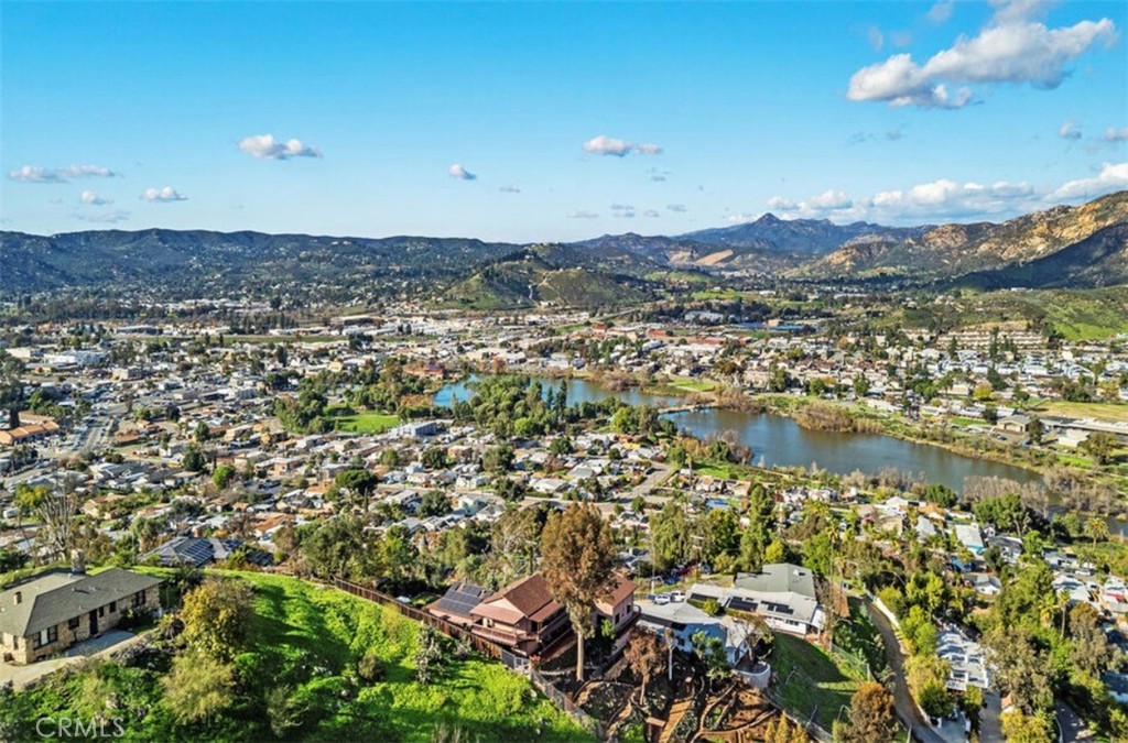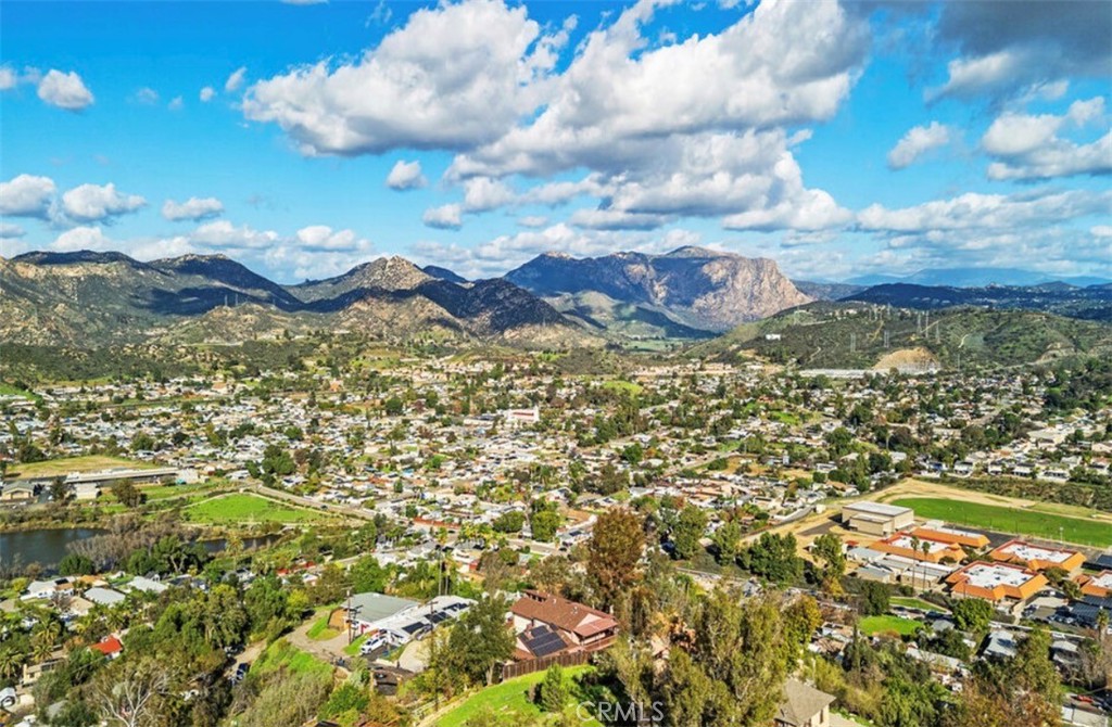 Welcome to Castle Court Drive, a truly one-of-a-kind mountain-top residence offering panoramic views overlooking Lakeside and the surrounding countryside. Perched at elevation, this exceptional property captures sweeping vistas from nearly every room, with abundant windows designed to frame the scenery from all angles. The home has been thoughtfully updated and meticulously maintained by the original owner, featuring new countertops, updated appliances, a new HVAC system, solar power system, brand-new roof, and new windows throughout. The attached and detached structures are equally impressive, including a permitted, detached tri-level 3-car garage with workshop space below and attic storage above, offering approximately 6-foot ceilings in both the shop and attic areas. The garage itself features six picture-frame windows showcasing remarkable views. The main level offers an open floor plan with a wood-burning fireplace anchoring the living room and a well-appointed kitchen with stainless steel appliances. A striking picture-frame window highlights the stairway leading to the upper level, where a guest bedroom and the primary suite are located. The primary suite features windows on multiple sides and direct access to a wraparound deck ideal for enjoying sunrise and sunset views. The lower level includes a den, an additional guest bedroom, and access to another wraparound porch, creating flexible living and entertaining spaces throughout the home. Outdoors, the property is beautifully landscaped and fully chain-link fenced, featuring multiple fire pits and extensive lighting throughout the grounds. The exterior lighting system includes solar-powered fixtures and photocell-controlled illumination that activates at dusk, creating an inviting ambiance in the evening while showcasing city lights below. Located near schools and shopping, the property also offers direct access to nature. The rear of the home backs to the Whitaker property, now a public preserve, providing immediate access to hiking trails directly from the backyard (private access key). This is a rare opportunity to own a distinctive mountain-top home offering privacy, views, and functionality in a truly special setting.