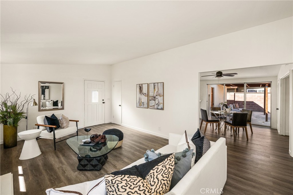 Updated and move-in ready, this 3-bedroom, 2-bath home in the desirable Madison Park neighborhood of Santa Ana offers a comfortable, well-designed layout with thoughtful enhancements throughout. The interior showcases new flooring, fresh interior and exterior paint, and a refined kitchen with new countertops, appliances, and a modern light/fan fixture. The living area is centered around a fireplace with gas log lighter and classic masonry chimney, creating a warm and inviting focal point. Both bathrooms have been tastefully refreshed, and the home’s systems have been well maintained, including a recently serviced furnace and a new thermostat for added comfort. Outside, the yard has been refreshed with clean landscaping and fresh mulch at the front entry, enhancing curb appeal, while the covered patio offers an ideal setting for outdoor living and entertaining. Ideally situated near parks, schools, major freeways, and just minutes from the thriving Downtown Santa Ana area with its dining, shopping, and cultural scene.