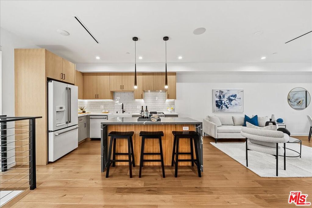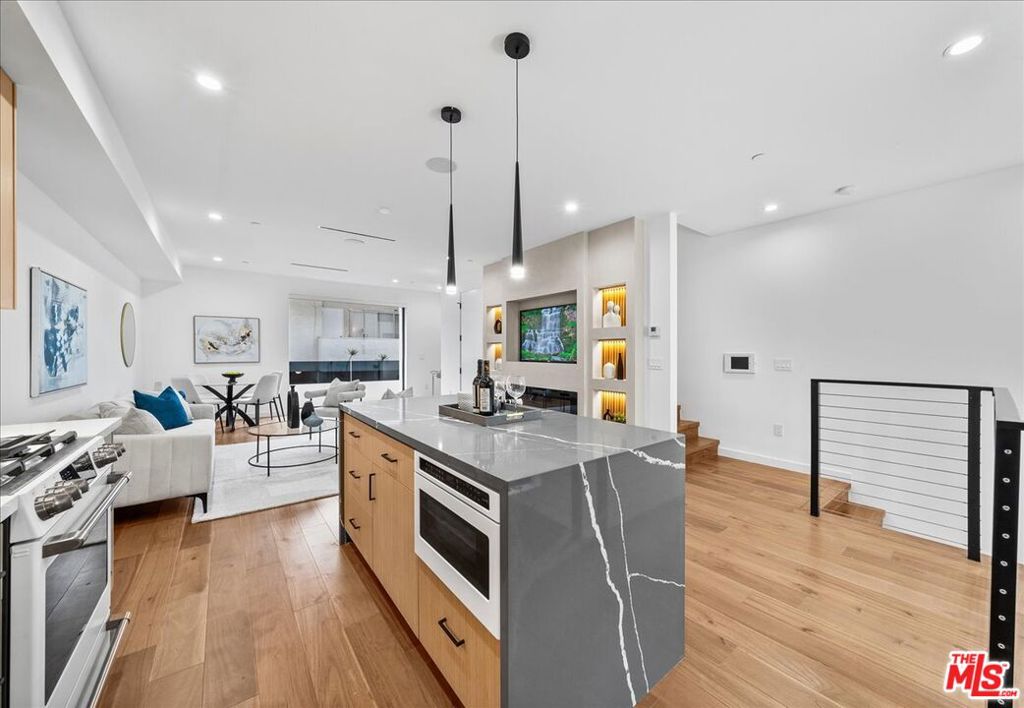 Introducing an exclusive collection of five newly built, gated small-lot residences in the heart of West Hollywoodeach residence with its own separate address, and this is the only one currently available. Thoughtfully designed for modern living, this three-bedroom home spans four levels and showcases a bright, open-concept floor plan with high ceilings, recessed lighting, custom flooring, and refined millwork throughout.The gourmet kitchen features premium white-and-gold appliances, designer finishes, and seamless flow into the spacious living area with an electric fireplaceideal for both everyday living and entertaining. The expansive primary suite offers a true retreat, complete with a spa-inspired bath featuring a soaking tub, glass-enclosed shower, dual vanities, and an oversized walk-in closet.Enjoy private balconies and terraces, plus a spectacular rooftop deck with a built-in BBQ and outdoor kitchen. Select floor plans offer sweeping city views, including Downtown LA, the Hollywood Hills, the Hollywood Sign, and Griffith Observatory an exceptional setting for entertaining or relaxing under the stars (buyer to verify).Additional highlights include an in-unit washer and dryer, pre-wired security system, integrated sound system, fire sprinklers, gated entry, and secure garage parking. A rare opportunity to own a brand-new, contemporary residence just moments from the vibrant shops, restaurants, and markets of West Hollywood and Hollywood, with convenient access to the best of Los Angeles. *Select floor plans*; buyers must verify.