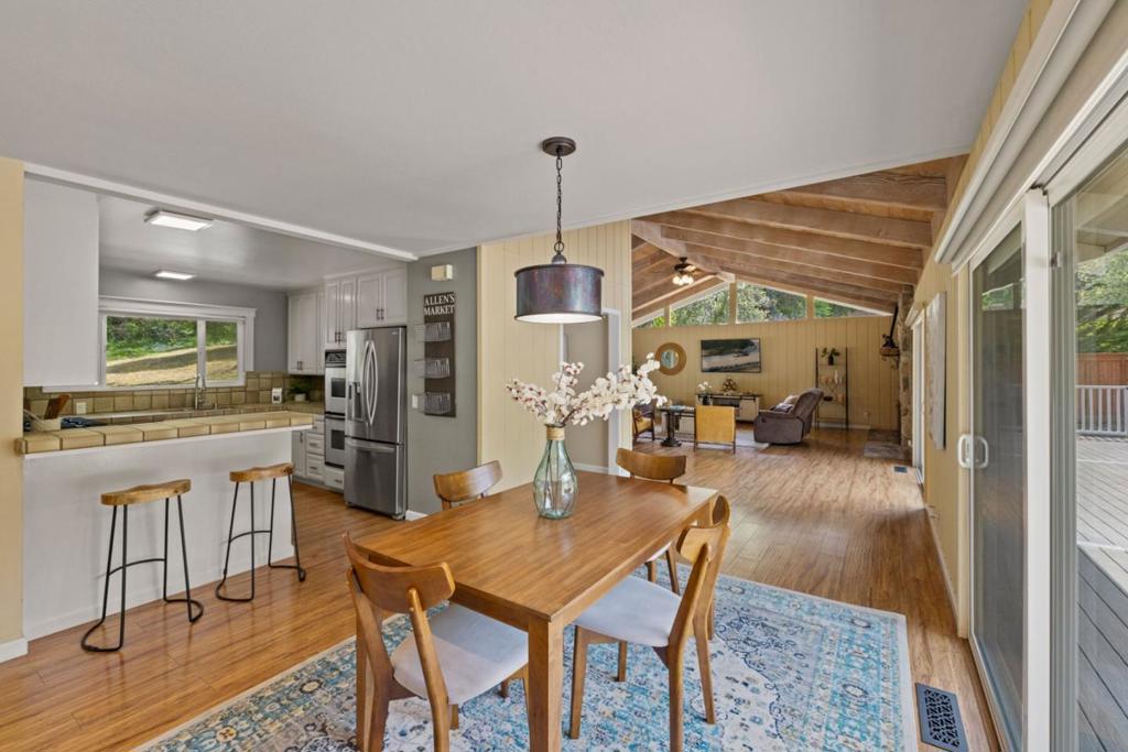 Being outside in the fresh air and sunshine feels good anywhere, but it feels absolutely magnificent here in Corral de Tierra Oaks, a peaceful neighborhood set into the green hills off Monterey-Salinas Highway 68, where you’ll discover this single-level beauty on more than half an acre of hearty land. This is one of those truly wholesome properties that nourish mind, body, and soul, with ample space to relax both indoors and outdoors. Pass languid afternoons sunbathing by the pool or enjoying a refreshing swim. Invite your friends for dinner parties on the massive back deck, which connects back to an open living and dining area through two sliding glass doors. In the soft glow of dusk, with a fire crackling in a stone-backed fireplace, kick back and watch your favorite film in a living room featuring high vaulted wood ceilings and architectural windows. Sleep soundly in one of three spacious bedrooms, each one awash in light during the day and offering views of oak trees casting wild shadows against the grass. The primary bedroom has its own access to the deck. So, when you open your eyes each morning to sunlight streaming in, you won’t have to wait even a minute to dive into the pool or just start leisurely drinking in all the simple splendors that are yours to relish here.