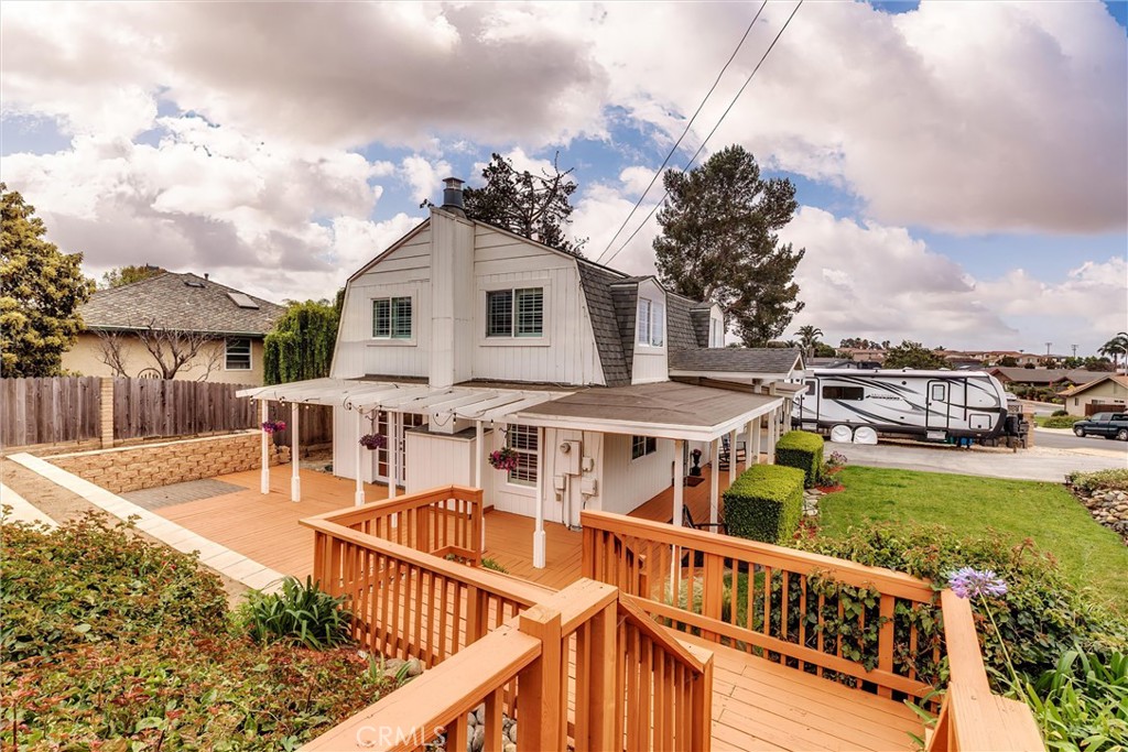 Large corner lot home featuring 3 bedrooms and 2.5 baths that is filled with charm and style. This home shows like a model and offers upgrades throughout. The kitchen has corian countertops and a breakfast island, two living room areas, one with a stunning gas fireplace, dining room, and mud room all accented with recessed lighting and high quality laminate flooring. The upstairs features 3 bedrooms with the primary room exiting to a garage roof sundeck! The side yard is landscaped for the gardener enthusiast, the backyard offers a shed, and the property has a designated RV parking area. The owners affectionately call this home their “Beach Barn” and you will too.