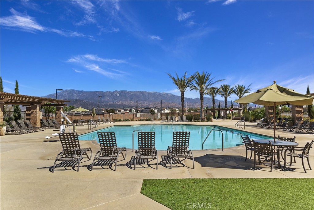 Come enjoy the luxurious lifestyle of the Olivewood community! This turnkey single-story home is nestled within a gated community and boasts 2 pools, including one with a swim playground and splash pad, a wade pool, a spa, BBQ areas, a volleyball court, and a stunning clubhouse available for residents to rent. Additionally, there’s a separate park featuring a walking circuit, an exercise trail, and a basketball court! The home offers 4 bedrooms and 2 baths, adorned with luxurious laminate wood plank flooring, except for the carpeted bedrooms. Spanning 1,806 square feet, this light-filled open floor plan is enhanced by beautiful wood shutters throughout. Freshly painted with updated hardware, plantation shutters, and sliding barn doors, the expansive primary suite includes a large walk-in closet. The backyard showcases a brand new 14X10 gazebo on a private patio. With artificial turf in both the front and back, maintenance is a breeze. Both yards are equipped with drip systems and sprinklers. The paid-off solar system, complete with extra panels, means the seller’s family of four rarely sees an electric bill! Conveniently located between the 10 and 60 freeways, this home is perfect for commuters.
