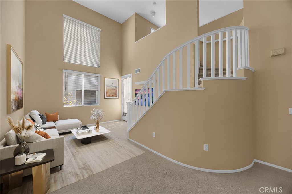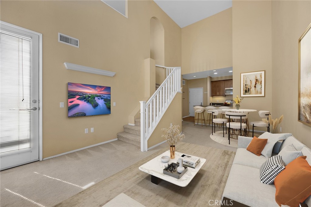 Welcome to this freshly painted two-level condo located in the Avenue One neighborhood situated within an ideal area of Irvine featuring a bright and open floor plan. Get ready to enjoy this inviting one bedroom, one bath unit PLUS a large open loft area only available on the upper level units of this development. Voluminous ceilings and a private balcony which is accessed from both the living room and bedroom, brings the fresh air indoors and expanding the versatility of the floorplan. Open to the two-story great room is the kitchen complete with natural wood cabinetry, sleek granite countertops, stainless appliances including brand new microwave, and a convenient dining counter. Desirable features include a soothing neutral palette, recessed lighting, brushed nickel hardware and a deep soaking tub to relax in. This unit offers two parking spaces, and is situated close to your favorite shopping, dining, and theaters. Ideal commuter friendly location near the 5, 405 and toll roads.