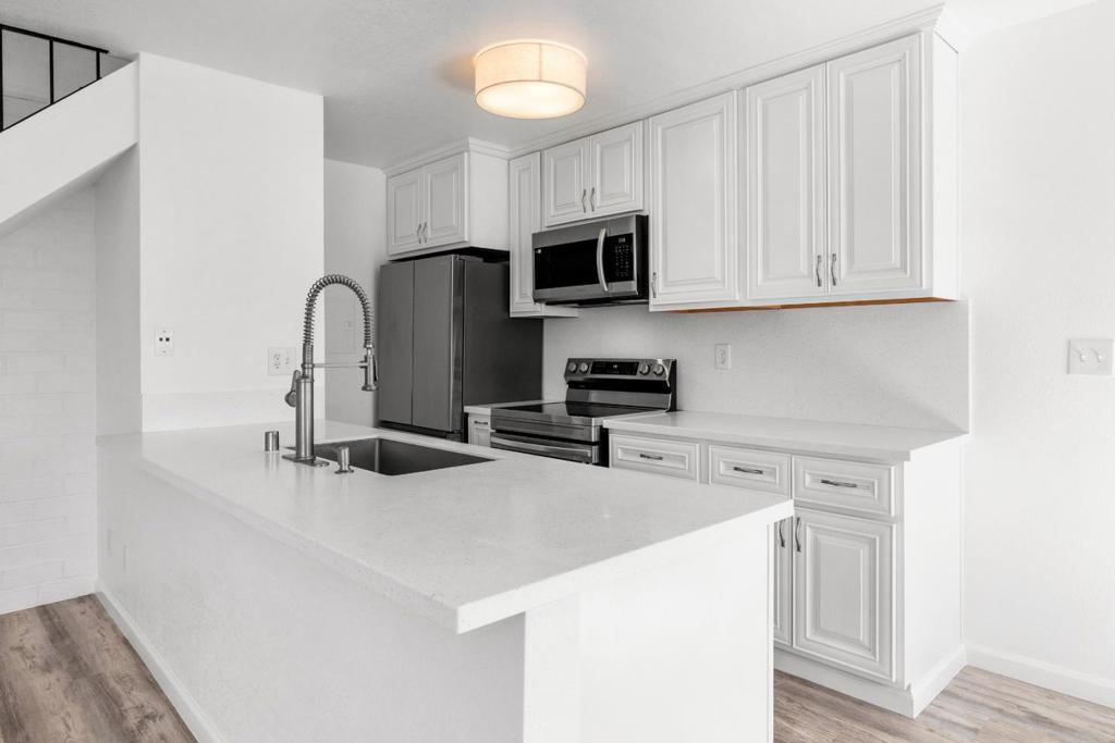 Wonderful opportunity to live in a newly renovated 2BD/1BA apartment located in Capitola’s coveted Jewel Box area. Excellent location, quiet and near shops, businesses and world class beaches. Brand new LVP flooring, freshly painted, new Interior doors w/ new hardware. Chef’s kitchen with all new cabinets, countertop, Samsung stainless appliances (dishwasher, 3-door French door refrigerator/freezer, range, microwave, and top of the line Kohler faucet spray for easy cleaning. New Lennox furnace and thermostat if you ever need heat, new blinds in all rooms for privacy. Primary bedroom has walk-in closet. Both bedrooms are light and bright with large windows. 1 space in carport, 2 storage areas in carport. Shared laundry around the corner, access to the community pool, and easy to get to garbage. Quiet neighborhood. $3,500/mo First & Last plus $240 cleaning deposit. Small pet (cat or small dog) is ok! Lease: 1 Year min. Welcome home!