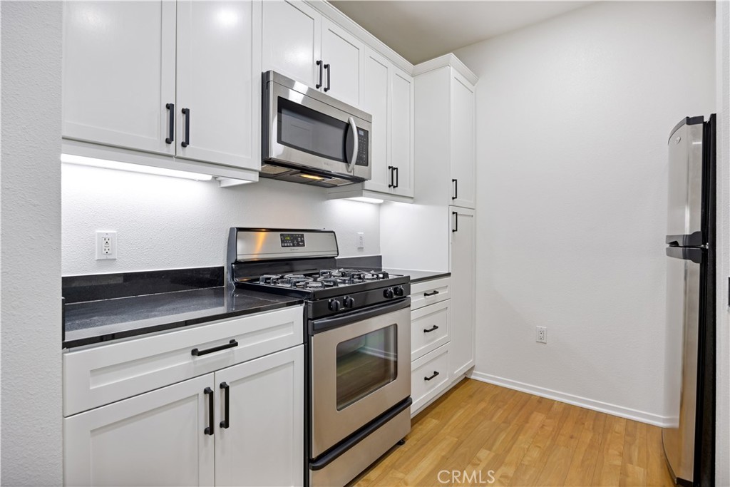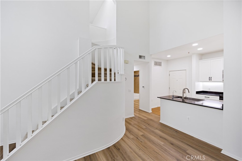 Welcome home to 1438 Scholarship! Located on the TOP FLOOR of the Avenue One building, this 1 bedroom PLUS loft offers 20+ foot ceilings in the living area providing ample natural light, an open modern kitchen with newly refinished white shaker cabinets, black granite counters, and stainless steel appliances. A spacious loft overlooking the living space is perfect for a home office, gym, or guest quarters. The bedroom offers recessed lighting, 2 closets and access to the private balcony with city views. Other notable features include fresh paint throughout, in-unit laundry, a spacious bathroom with granite counters, luxury vinyl flooring in the living areas, and assigned parking with ample guest parking. Avenue One offers secured access to the building, gated garage parking, elevator access to the unit, and resort style amenities – pool, spa, BBQ area, clubhouse, conference room, business center, indoor basketball court, tennis courts, and fitness center. Conveniently located in the business district of Irvine and just minutes from John Wayne Airport, UCI, Park Place, University Town Center, and the District.