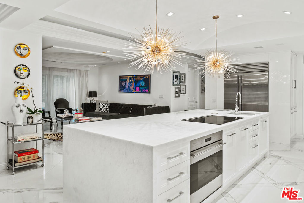 Welcome to this spectacular, decorator perfect, Mediterranean style home adjacent to the Bird Streets. Featuring 3 custom bedrooms, 3 baths, with direct access from the garage. Enter into the sensational formal entry, with a custom made chandelier, gorgeous marble floors throughout, then in to the beautiful formal living room with dome ceiling, fireplace, recessed lighting, an abundance of windows and french doors leading out to a patio. The splendid large formal dining room features a dome ceiling, fireplace another custom chandelier, and Fleetwood sliding doors opening to the outside. The exquisite chefs kitchen has an oversized white island with custom lighting overhead. A butlers prep area, two wine coolers, top of the line appliances, walk in pantry and views of the pool with a significant appealing waterfall. The family room has a double sided fireplace, built in bookshelves, dome ceiling, and Fleetwood doors. Enjoy the designer powder room, then enter the sizeable master bedroom with walk in closet, a beautiful chandelier, custom master bath with a steam shower, soaking tub, and dual sinks. The secondary spacious bedroom with a large walk in closet, has views of the pool, spa and rear patio. The rear yard has in addition to the pool/spa, an additional spacious side yard as well as a deck with cabana. The views are spectacular. There are custom skylights throughout for maximum lighting, recessed LED lighting, solid core doors, built in speakers throughout, and 12 high def cameras for optimal security and privacy.