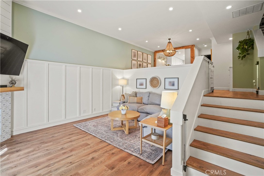 Exquisitely renovated Sherman Oaks townhome with elevated style and exceptional upgrades, located in the prime verdant enclave of the highly sought-after Oak Pointe Community. At the heart of the home is a newly reimagined kitchen designed with elegance and functionality in mind. A Bosch 5-burner cooktop with custom hood, Bosch dishwasher, and KitchenAid Oven and Mircrovave pair with an offset farmhouse sink, while striking waterfall quartz countertops and a counter-to-ceiling tile backsplash create a dramatic focal point. Soft-close cabinetry with in-cabinet and under-cabinet lighting and a custom pinewood threshold complete this showpiece kitchen—perfect for family living and entertaining. Soaring ceilings and abundant natural light enhance a split-level design where elegance meets comfort. Engineered hardwood flooring in rich wood tones flows throughout, while crown molding, plantation shutters, recessed lighting, and a gas fireplace with bespoke mantle add refined touches. Board-and-batten accents and custom shiplap bring warmth, texture, and architectural distinction. Sliding glass door opens to a sun-filled patio for coffee, BBQs, or gardening. Upstairs, the oversized primary suite includes space for a sitting area, dual closets, and an ensuite bath with dual sinks and shower-in-tub. Freshly carpeted stairs lead to a newly renovated laundry room with quartz folding counter and cabinetry. Direct 2-car garage access and a bonus 300 SqFt basement with shelving offer endless storage and hobby potential. One of the finest units in all of Oak Pointe, with exclusive access to the community’s only year-round heated pool, plus spa, tennis, pickleball, basketball, dog parks, green spaces, and pet friendly walking paths. HOA dues include water, trash, internet/cable, earthquake insurance, landscaping, and community events. Families will appreciate the Blue Ribbon Kester Avenue Elementary School within boundary, and the location offers walking distance to Ventura Blvd, shops, cafés, dining, and Sepulveda Basin Recreation Area with golf, trails, and sports fields. Quick freeway access completes the lifestyle. Don’t let this one-of-a-kind Oak Pointe residence slip away—schedule your private showing today and step into a home that truly stands apart.
