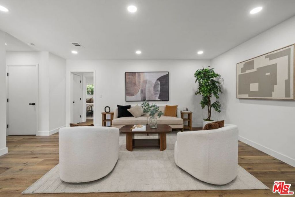 Welcome to the ultimate turnkey experience! This stunning, fully-gated modern home on a sprawling corner lot in Van Nuys offers unparalleled privacy and function perfect for a first-time buyer or growing family. Step into a bright, open-concept layout where the fully remodeled kitchen is the show-stopping heart of the home. It features a gleaming quartz waterfall island, top-of-the-line stainless steel appliances, and custom cabinetry with smart built-in USB/outlets making entertaining effortless. A formal dining area flows seamlessly from the kitchen. The versatile floor plan boasts a spacious primary suite with a luxurious en suite bath, plus two additional, well-sized bedrooms. Both bathrooms have been completely renovated for a spa-like feel. Enjoy a clean, contemporary aesthetic with new waterproof vinyl flooring, recessed lighting, and modern fans throughout. This home adapts to your life. A versatile bonus room can easily serve as a studio, playroom or fourth bedroom, complemented by a dedicated home office for remote work. The expansive, private backyard is a tranquil canvas with mature trees, ideal for al fresco dining under thoughtful dusk-to-dawn lighting. Multiple lounge areas throughout the front and back yard for maximum potential of this expansive corner lot. Every major system has been updated for comfort and efficiency: newer central HVAC (w/ Nest), a new 200-AMP electrical panel, updated plumbing, newer shingle roof, and double-pane tinted windows. Instant curb appeal is provided by the freshly painted exterior, newly paved driveway, and modern garage door. The garage is already updated with new drywall, paint, sensor lights, and an epoxy floor, making it perfectly poised for an easy ADU conversion. With the new 200 amp electrical panel and plumbing in place, you can quickly unlock potential rental income or create a private guesthouse. Parking is plentiful with a fully-gated driveway. Don’t miss this opportunity to own a completely renovated Van Nuys gem!