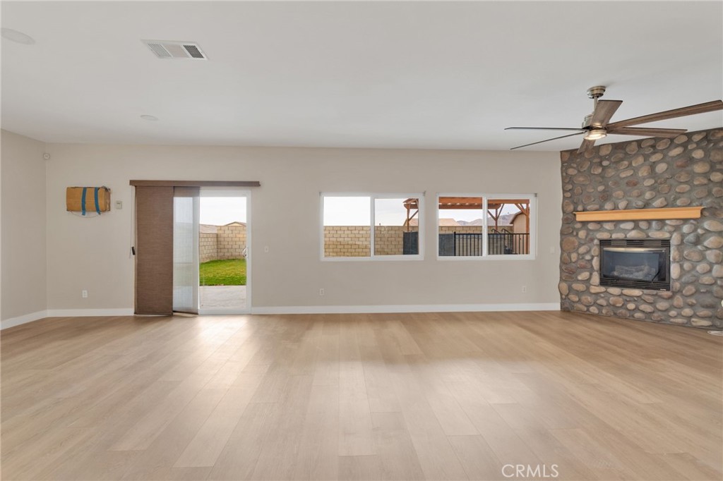 MOVE IN READY with NO HOA! As energy efficient as it gets, this beautifully upgraded home is sure to check all the boxes. Featuring an open concept layout with six bedrooms and four bathrooms, including two main floor bedrooms and two main level bathrooms, this home is ideal for guests or multigenerational living. The upgraded kitchen offers abundant storage, quartz countertops, stainless steel appliances, a 36 inch six burner stove with range hood, in counter microwave, two pantries, pot and pan pull out drawers, and soft close cabinets and drawers throughout. The bathrooms have been remodeled, and the spacious primary suite is a true retreat with a large bedroom, oversized walk in closet, and an upgraded bathroom featuring an oversized walk in shower with two showerheads, including a multi function shower panel system. This home was designed with efficiency in mind and includes new energy efficient windows throughout the entire house, solar window shades, solar, battery backup, a tankless water heater, and a swamp cooler. Additional interior upgrades include recessed lighting and new luxury vinyl flooring throughout. Outside, the property features a gated swim spa, fully landscaped front and backyard, two large storage sheds, a new block wall surround, space for toys, RV parking, and an RV dump hookup. Solar agreements are to be assumed by the buyer. Conveniently located near the 15 Freeway, shopping, dining, and a community park, this home offers comfort, efficiency, and extensive modern upgrades.