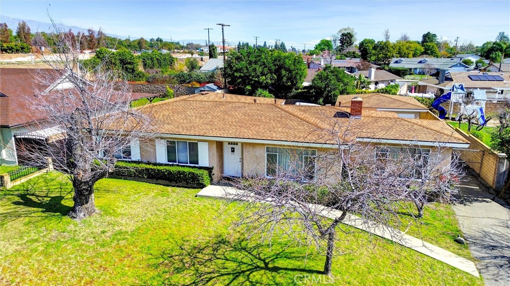 Vintage Residence in the Historic Heart of Ontario! Gracefully positioned at the end of a quiet cul-de-sac in one of Ontario’s most coveted, tree-lined neighborhoods, this distinguished single story 4-bedroom, 3-bathroom home blends timeless charm with remarkable opportunity. Rich in character, the residence showcases classic architectural details, abundant natural light, and generously proportioned living spaces. A welcoming living room anchored by a traditional brick fireplace creates a warm and inviting ambiance. The formal dining room—also perfectly suited as a private office—features a striking wood-beamed ceiling and its own separate entrance, offering flexibility for today’s lifestyle needs. Just beyond, a spacious family room flows conveniently from the kitchen, providing an ideal setting for both everyday living and entertaining. The kitchen retains its original cabinetry, presenting a refined canvas ready to be reimagined. An indoor laundry room enhances daily convenience, while recent improvements—including a newer roof and updated heating and air-conditioning system—add comfort and peace of mind. Outdoors, the property offers exceptional space and possibility. Large front yard, side yard with potential small RV parking, and an expansive backyard adorned with a charming rose garden and ample room to create a custom outdoor retreat. The detached garage provides additional storage and exciting ADU potential (buyer to verify). Ideally situated near downtown Ontario, parks, schools, shopping, and convenient access to the 10 Freeway, this is a rare opportunity to restore and elevate a home rich in heritage and enduring appeal.
