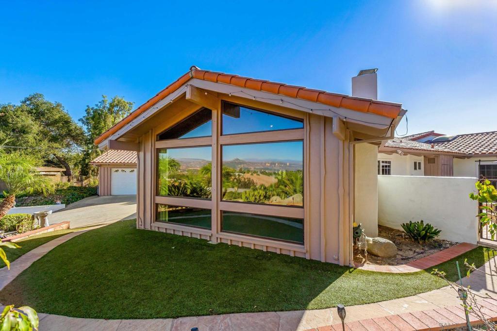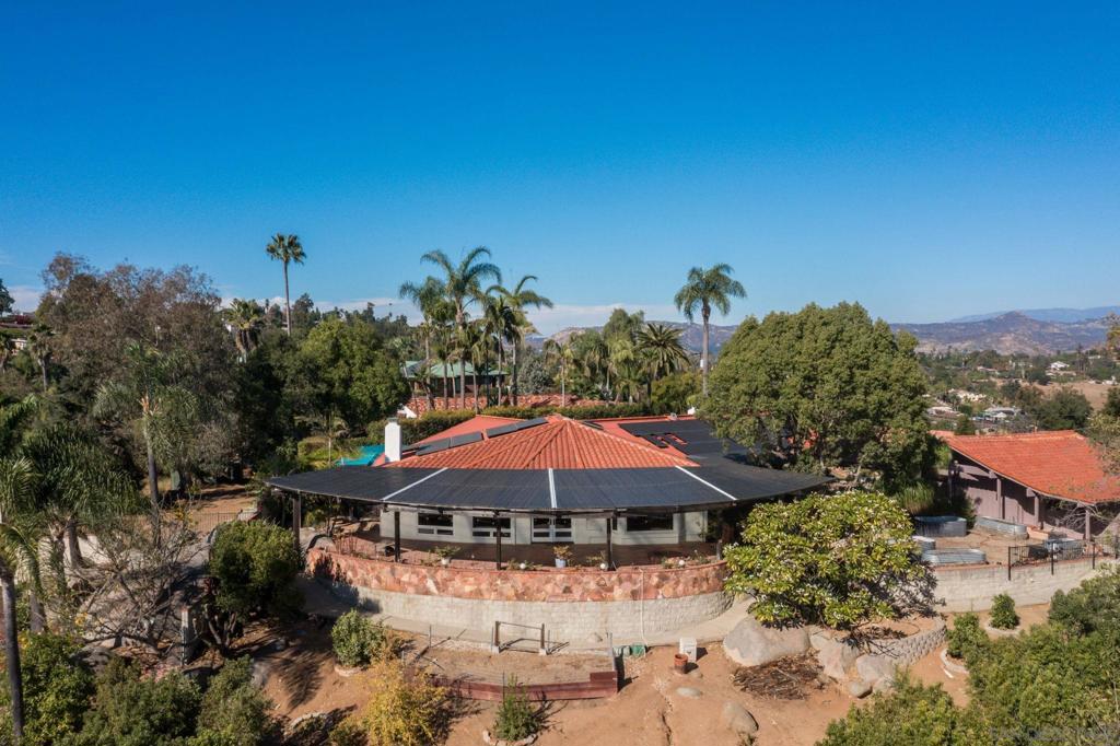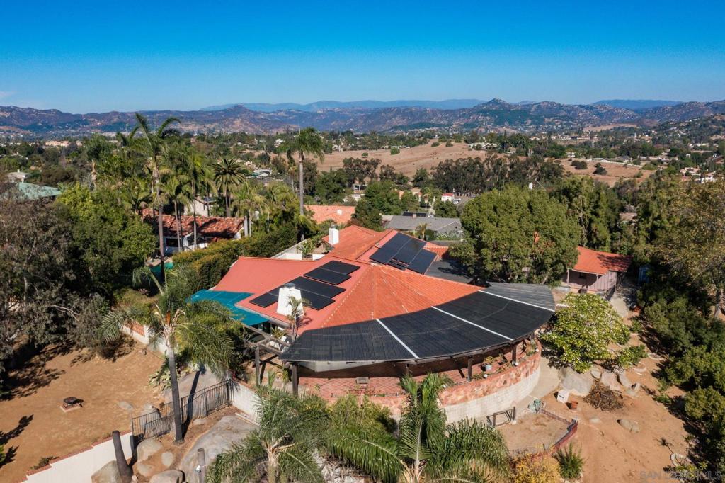 Remarkable sweeping views! Iconic Escondido home in a spectacular location, on the market for the first time ever! Beautiful custom built home, owned by the same family for over 50 years. Perfectly situated to take full advantage of the panoramic views and hill top breeze! Owned SOLAR! Stunning 22′ x 60′ covered patio with gas fire pit & ceiling fans is the perfect place to enjoy the day/evening. Large gourmet kitchen, island with sink & 4 burner plus grill cook top, sub zero refrigerator, warmer drawer, tons of cabinets, menu planning desk, & double oven. Separate laundry room with sink, more pantry storage, and full bath. Enormous family room, with stunning wood beam vaulted ceilings, large fire place, custom built in shelves/display nooks & incredible south to west views & plenty of natural light. Lovely formal dining room adjacent to the kitchen. Additionally there’s a very large bonus area with full wet bar, that was used for less formal dining, complete with a grand view, tile flooring, & big windows. Grand formal living room with more spectacular views to the north/east, vaulted ceilings, magnificent windows, beautiful fireplace, a perfect place to read a book or shoot a game of pool. Generous master bedroom with sliding glass door to private back patio, with hot tub. Upgraded primary bathroom with large walk in shower, dual sinks, & large cedar closet. Detached 2 car garage with vaulted ceiling, first storage room attached to back of garage is handy for seldom used items. Second larger storage room can be used as a workshop! The current owner loves to garden! The yard has several citrus trees, fig tree, passion fruit, dragon fruit, amazing plumeria tree, and more. Yard is set up for raised bed gardens, as well as an additional fenced planting area in the yard. Additional storage shed in rear of home. Home is centrally located, close to schools, shopping, freeway access, but yet maintains a rural feel.