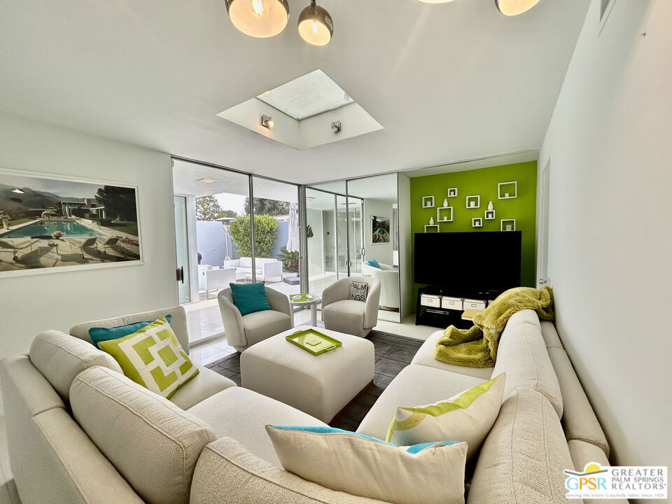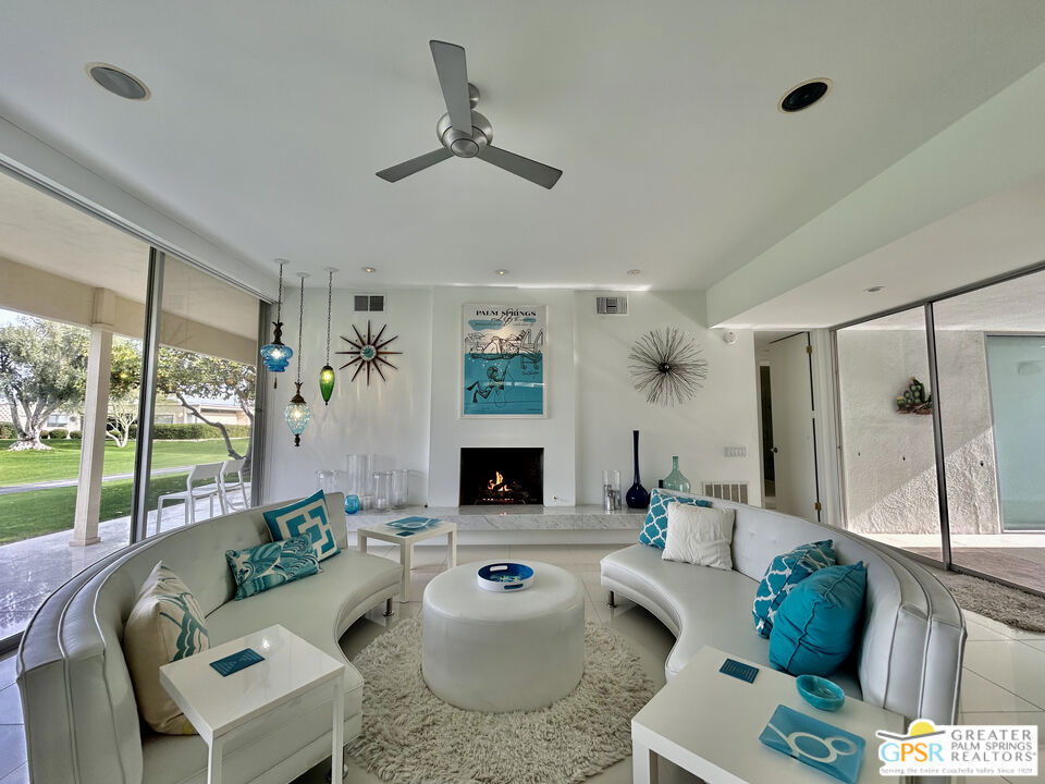 Originally designed by architect Richard Harrison in 1967 this Fantastic Mid-Century decorated 2 Bedroom 2 Bath plus den unit with Fireplace open floor plan and private patio for inside/outside living and entertaining. Adjacent to Ted Robinson 18 hole designed Golf Course and steps away from one of Seven Lakes 15 Community Pools with Spa and Kitchenette to entertain family and friends. Enjoy Tennis, Pickle Ball or dinning in the Clubhouse. Call Agent for availability, Not available until July 2026