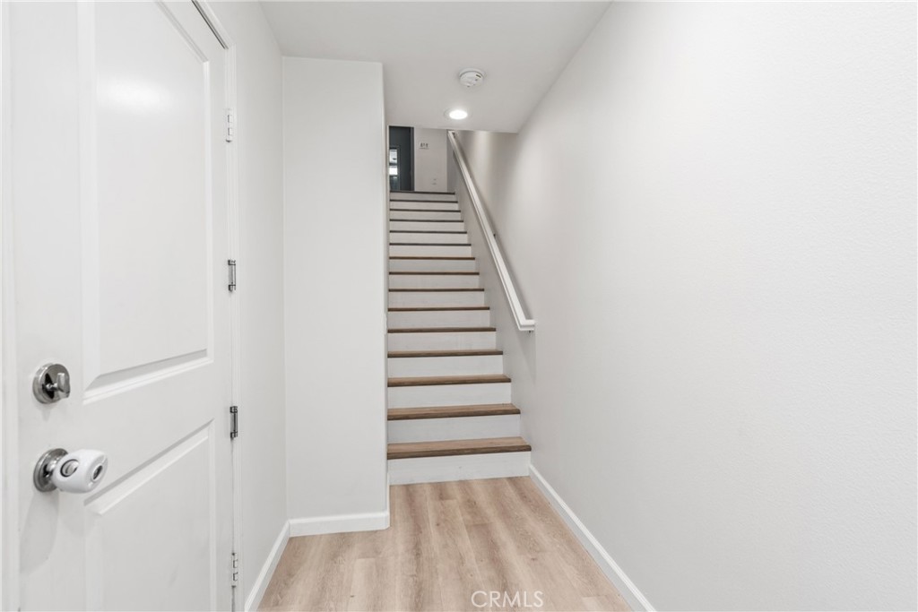 This modern tri-level condo in the Ventana Walk community of Santa Ana is a perfect blend of style and convenience. With 3 bedrooms and 3 full bathrooms, it offers ample space for comfortable living. The stunning kitchen is the heart of the home, featuring a large island, sleek countertops, upgraded gray cabinets, and stainless steel appliances, ideal for cooking and entertaining.The bright and airy atmosphere is enhanced by recessed lighting and upgraded laminate floors throughout. The open concept design includes a cozy nook space adjacent to the kitchen, perfect for casual meals or relaxation. Step into the inviting living room, which connects to a balcony, perfect for enjoying the outdoors. Upstairs, you’ll find dual master suites, each with walk-in closets and attached bathrooms, providing privacy and comfort. A convenient laundry room is also located on this level. The attached tandem garage accommodates two cars and offers additional storage, along with a tankless water heater for efficiency. Situated near Downtown Santa Ana, this condo provides easy access to shopping, dining, amenities, and entertainment, making it an ideal home for those seeking modern living in a vibrant community.