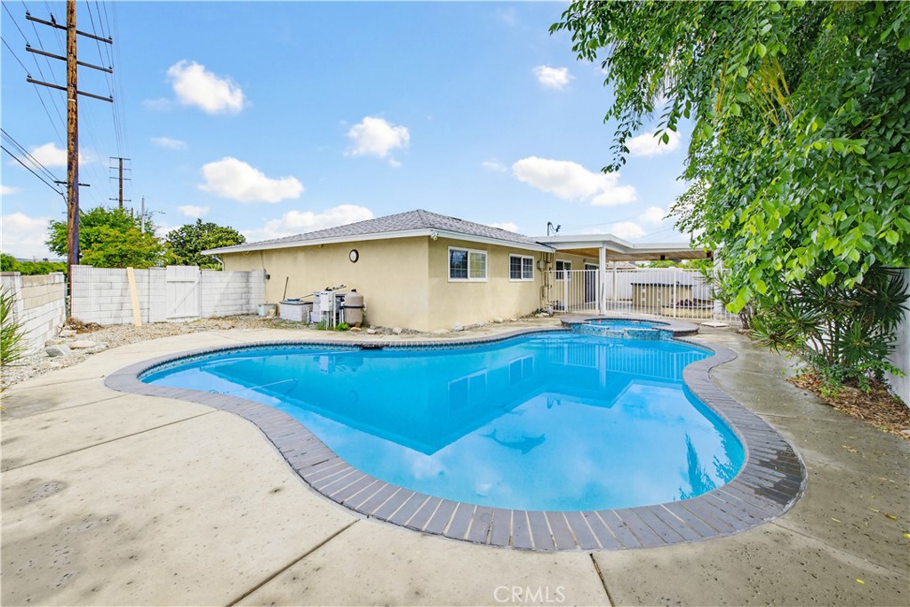Upgraded interior, set on an expansive 10,000 sq ft corner lot, showcasing a refined backyard with a covered patio, heated pool and built-in BBQ area—offering a level of outdoor living rarely found in comparable single-story homes. The interior unfolds with a bright, open-concept layout, enhanced by new Mount Vernon luxury vinyl flooring that extends seamlessly throughout the entire home, paired with eggshell white designer paint, new baseboards, and an expansive layout for flexibility in design while maintaining a clean and modern aesthetic. Flooding the home with natural light, the kitchen presents a functional design, anchored by natural wood cabinetry that offers generous storage and timeless character. A well-positioned gas range serves as the culinary focal point, complemented by stainless steel appliances and ample counter space that supports everyday cooking offering an open connection to the dining area, creating an inviting environment. In the attached garage, you’ll find washer/dryer hookups along with additional cabinetry, offering practical storage solutions. The guest bathroom featuring a sleek white vanity paired with brushed nickel fixtures, a detailed mosaic backsplash, a large framed mirror, an enclosed shower with sliding glass doors, warm-toned tile, a built-in niche, and a bench for added comfort. The primary suite offers a spacious walk-in closet and an en-suite bathroom complete with a separate soaking tub, a glass-enclosed shower, and warm tile tones that create a spa-like setting. Each additional bedroom reflects the same cohesive design, enhanced by newly installed baseboards and fresh designer paint that flows seamlessly throughout. Open the brand-new sliding door, extending the living experience outdoors to the covered patio with a BBQ and bar area beneath a wood-finished ceiling and recessed lighting, along with a fire pit, highlighted by a heated pool that serves as the centerpiece of the backyard with a yard of this scale providing openness and versatility. Positioned on a desirable corner lot within a roundabout, the property benefits from increased space, curb presence, and ample parking. Major system upgrades include a new roof, new HVAC system, new furnace, double-pane windows, and a newer water heater—offering added confidence & long-term efficiency. This residence presents a compelling combination of indoor comfort, outdoor versatility, and a strong foundation for both immediate enjoyment and long-term value.