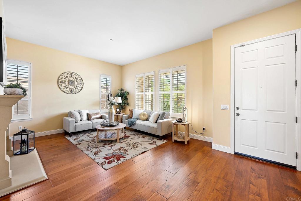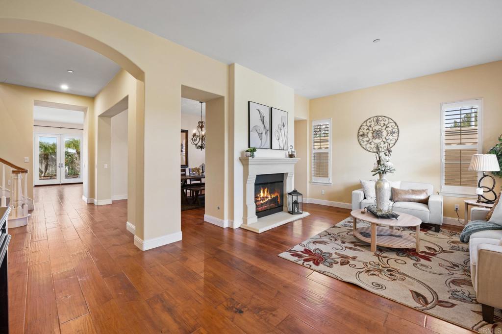 Nestled in the heart of 4S Ranch, this spacious, exquisite home is a harmonious blend of modern elegance and timeless charm. As you step inside, you’re greeted by soaring ceilings and a sunlit expanse of beautifully maintained hardwood floors. The living room with an elegant fireplace opens seamlessly to the dining room. The open kitchen, a chef’s dream, has granite countertops, an oversized island, a walk-in pantry, and warm wood cabinetry. It overlooks a cozy breakfast area and a family room with a second fireplace and French doors that lead to the outdoor oasis. The magic continues outside, where indoor-outdoor living comes alive, offering a stunning Cumaru wood deck overlooking a sparkling pool and spa. The glass-enclosed pool room adds a touch of sophistication, while elevated, unobstructed views invite you to soak in the serenity of your surroundings. The master suite is a private retreat, featuring a sitting area, a spacious walk-in closet, and an ensuite bathroom with a soaking tub, a large walk-in shower, separate his and hers sinks, and a separate vanity. There is also a versatile bonus room upstairs with large French doors—perfect for a playroom, game room, or even a home theater. The home also features a large laundry room equipped with ample storage and a sink, while the garage offers extensive storage solutions, including overhead racks and a platform. Thoughtful updates like split AC/heating units, a water softener and filtration system, owned solar panels for both the home and pool, and a tankless water heater ensure modern efficiency. Walkable to award-winning Poway District schools, shopping, dining, and parks. Access to 4s Ranch Community Park and Pool with basketball and tennis courts, parks, and turf fields. Explore miles of mountain biking and walking trails that weave through the vibrant neighborhood. This is more than a house—it’s the backdrop for a lifetime of memories, waiting for its next chapter to unfold!