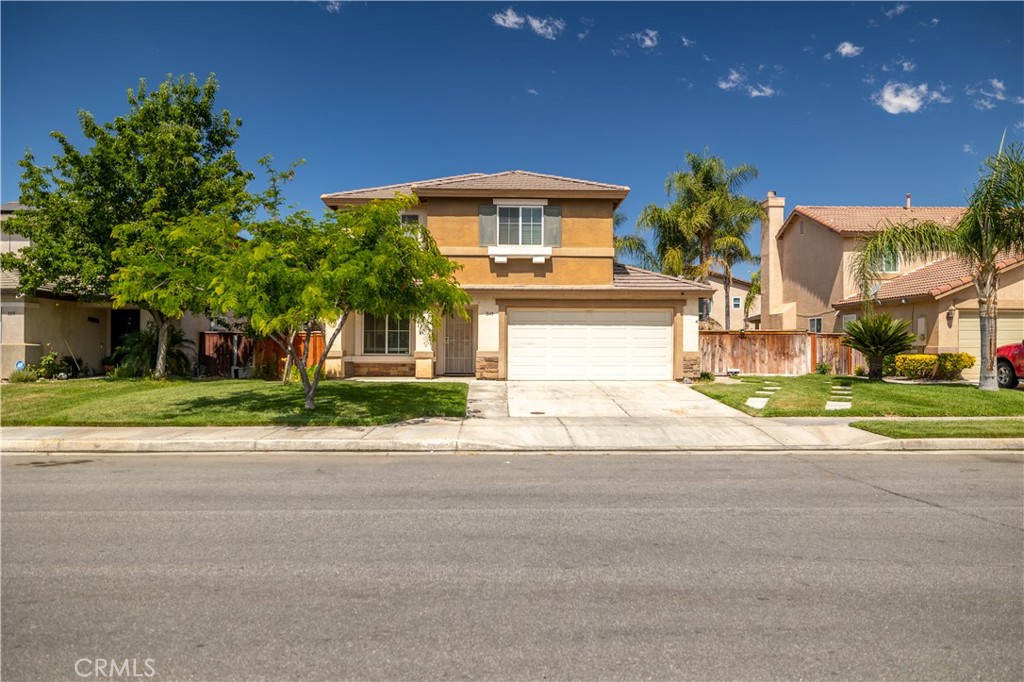 Beautiful and spacious five bedroom home in West Hemet just steps away from Harmony Elementary School! The home features carpet/wood laminate flooring, neutral paint colors, RV Parking and a landscaped backyard. And did I mention…PAID OFF TESLA SOLAR! The solar panels generate electricity for the home reducing utility costs; while the 220V outlet in the garage offers a convenient charging option for electric vehicles or other high demand appliances. As you enter the home, you will find a large formal living room with two story vaulted ceiling and the formal dining room. Around the corner is a very spacious kitchen with tons of cabinets and a center island, a breakfast nook and desk area. Kitchen opens to family room with fireplace. You will love the downstairs guest bedroom and 3/4 bath. Upstairs you are greeted by a loft…TV/Game area and four additional bedrooms. The light filled primary bedroom has a vaulted ceiling and luxurious bath with double sinks, separate tub and shower, complete with two wall-to-wall closets! The third full bath is situated just off the loft area with easy access from all the secondary bedrooms. Step out back to a very peaceful backyard with wraparound concrete patio/walkway. Both side yards are spacious…use one as a doggy run area or for parking the RV, boat or work truck. This home has it all. Hurry it won’t last long!