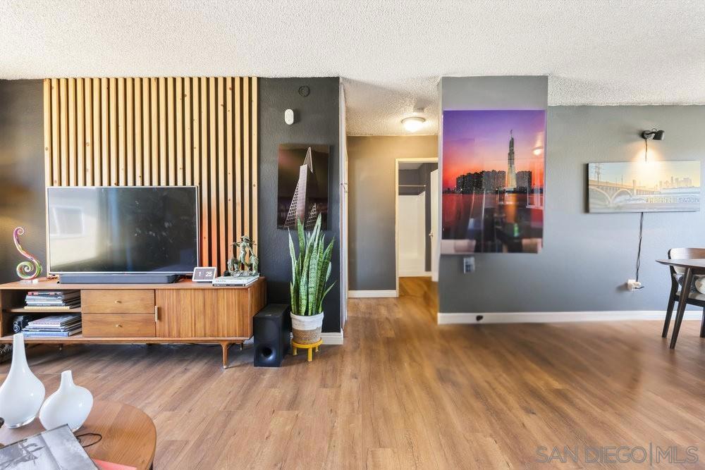 Rarely available top floor 2 bedroom corner unit in the central San Diego neighborhood of Oak Park. This beautiful home boasts a bright morning sun light from the east and gorgeous sunsetting views to the west, with no building obstructing to the west. This unit has many tasteful remodeled with hardwood plank flooring throughout Updated kitchen counter tops, new sink, industrial grade facet and brand new garbage disposal along with stainless still appliances that are not even two years old yet. The bathroom has a new vanity and top, along with new toilet. You are guaranteed one parking space, and a guest parking pass. Nestled just west of downtown San Diego is a home that is convenient to almost everything you need, from schools, shops, night spots and naval stations which means VA approved! This property does have daily grounds keepers and security officers. Don’t miss out on this incredible opportunity.