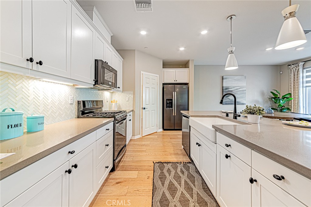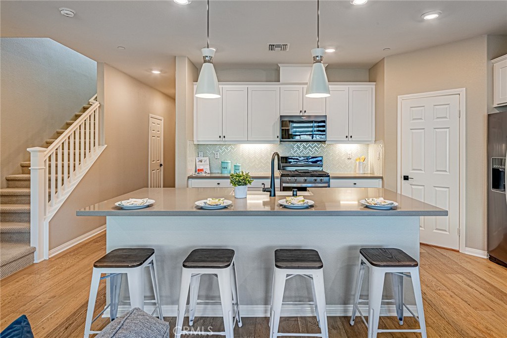 Gorgeous former model home in prime La Cresta location with paid solar, mountain views, and over $110K in upgrades. Beautifully upgraded former model home located in one of the best locations within the highly desirable La Cresta community of Upland. This stunning two-story residence offers beautiful mountain views and over $110,000 in total upgrades, including more than $90,000 in premium interior improvements. The bright open-concept floor plan is filled with natural light and showcases custom hardwood flooring, designer carpet, upgraded tile finishes, and elegant custom window treatments throughout. The chef’s kitchen features custom white cabinetry, quartz countertops, a designer tile backsplash, handcrafted luxury sinks (approx. $8,000 value), premium stainless steel appliances, and a spacious walk-in pantry. Upstairs, the primary suite offers a generous walk-in closet and a charming Juliet balcony with mountain views, along with a spa-inspired en-suite bath complete with a modern soaking tub, separate shower, and beautiful tile finishes. A convenient upstairs laundry room includes a modern washer and dryer. Additional highlights include a paid-off solar system and an epoxy-coated garage floor for a polished, finished appearance. Residents of La Cresta enjoy resort-style amenities including a pool, spa, parks, and walking trails. Ideally situated near Sycamore Hills Shopping Center with easy access to the 210 Freeway, shopping, and dining. Don’t miss this exceptional opportunity!