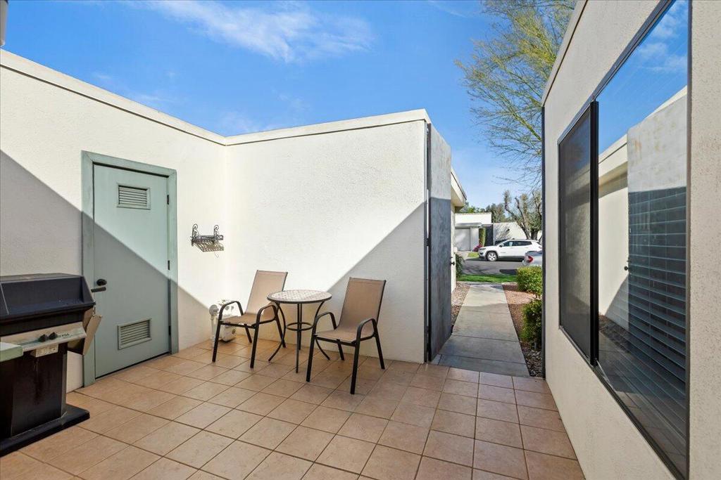 This sweet two-bedroom, two-bathroom home is clean as a whistle and ready to move right in. Gated front patio and an open rear patio with southern views give this home an indoor-outdoor feel. Steps from a community pool. Ball courts nearby for the active set. One-car garage and laundry on the premises. This property has all you could want for easy desert living!