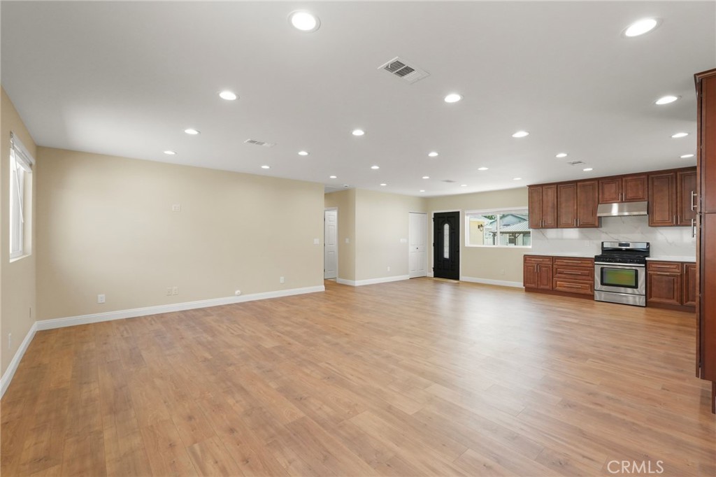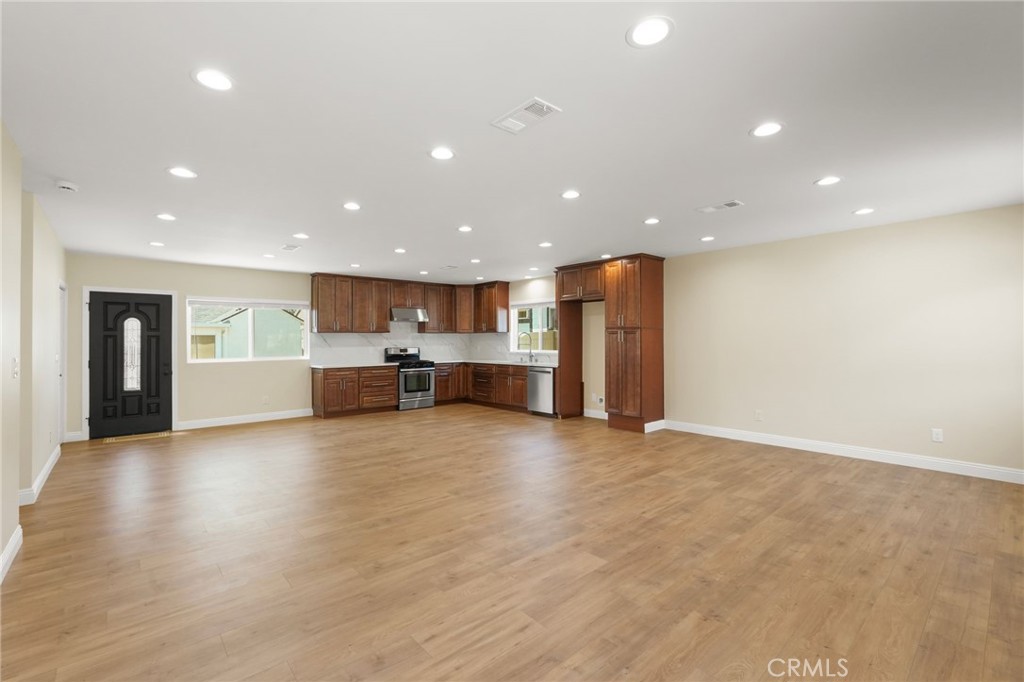 A 2-bedroom, 2-bathroom ADU with 1 car parking spot, offering 1,200 square feet of thoughtfully designed living space in the desirable Granada Hills Charter School District. Priced at $3,300 per month with a one-month security deposit. Enjoy central heating and cooling, side-by-side laundry hookups with convenient overhead shelving, and a kitchen outfitted with soft-close wood cabinets and pull-out drawers for maximum storage. The unit includes separate electrical and solar panels, a dedicated water sub-meter, and available street parking. Inside, the home is illuminated with ample recessed lighting throughout, including dimmable fixtures in the bedrooms and a zoned, dimmable lighting system in the living room. The bathrooms lighting is sectioned based on usage needs — including enhanced brightness for tasks like makeup application. A small entry closet provides a convenient spot for shoes, jackets, and keys. Both bedrooms include closets with elevated shoe racks for easy cleaning, while the master bedroom boasts an oversized closet with wired motion-sensor recessed lighting. The bathrooms are designed with custom mirrors, mirrored medicine cabinets, and hand-assembled wood vanities topped with quartz countertops. The master bath also includes a spacious double-sink vanity for added convenience. The elements of this rental have been curated to offer a blend of comfort, functionality, and elevated design.