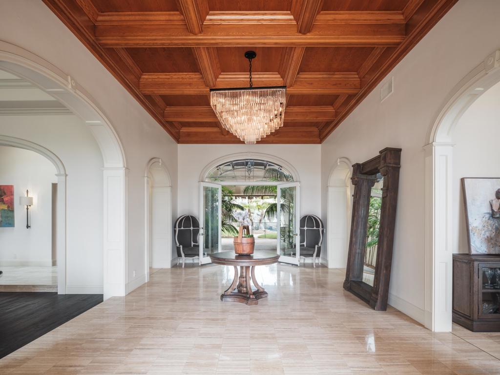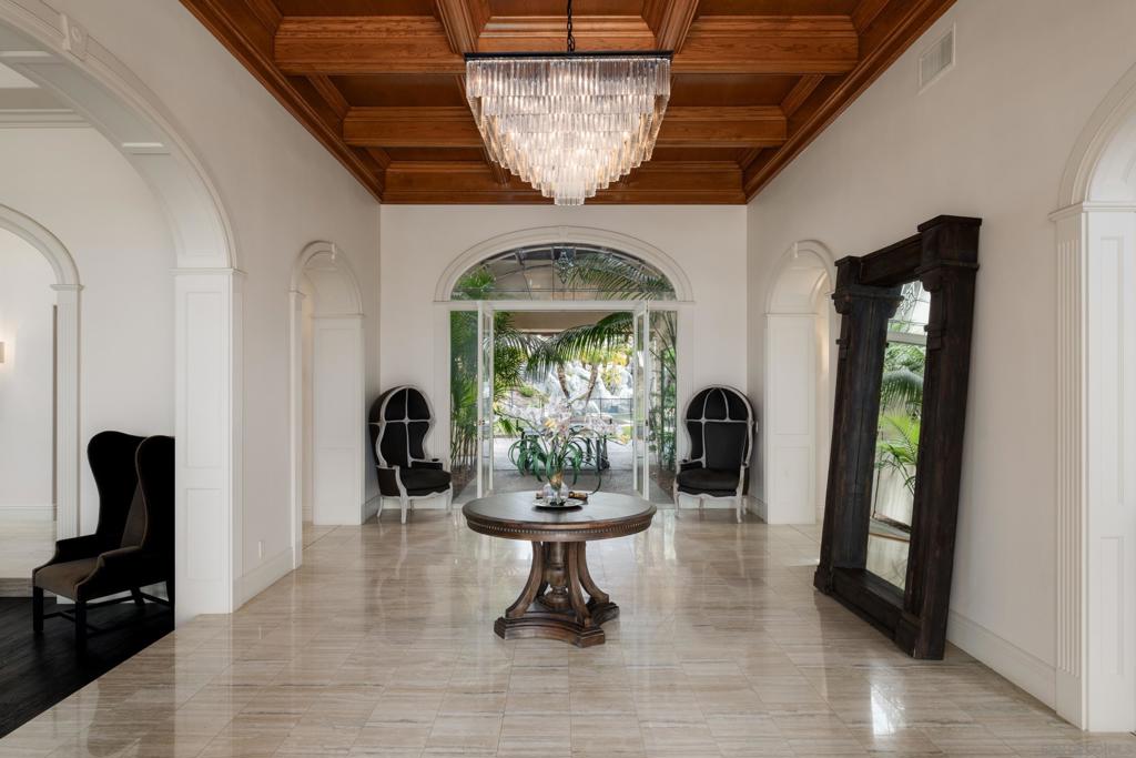 Welcome to the prestigious and sought-after community of Fairbanks Ranch. This nearly 8,000-square-foot estate is nestled atop one of the most desirable hilltops in the area, offering unparalleled privacy and security. Enclosed by six-foot concrete walls and featuring a private gated entrance, the property ensures an exclusive living experience. Circa Del Sur is an entertainer’s dream, highlighted by a luxurious backyard that boasts a custom pool, slide, and dual waterfalls crafted by the renowned Cement Sisters. The space is further enhanced with high-end appliances, including a Kalamazoo gourmet pizza oven, perfect for hosting memorable gatherings. The home offers an abundance of natural light streaming throughout, illuminating the exquisite custom hardwood floors made from aged oak wine barrels. Floor-to-ceiling La Cantina doors and soaring ceilings contribute to the home’s airy, open feel. No detail has been overlooked in the professional-grade kitchen, equipped with state-of-the-art Miele appliances. The primary-level master suite is a true retreat, featuring its own dry sauna, expansive his-and-her closets, a cozy fireplace, and a spacious master bath. Additionally, two generously sized bedrooms are located on the main floor, each with its own spa-inspired bathroom. Upstairs, you’ll find another private master retreat and bedroom suite with a separate entrance, offering the ideal sanctuary for guests. This exceptional home truly stands in a league of its own.