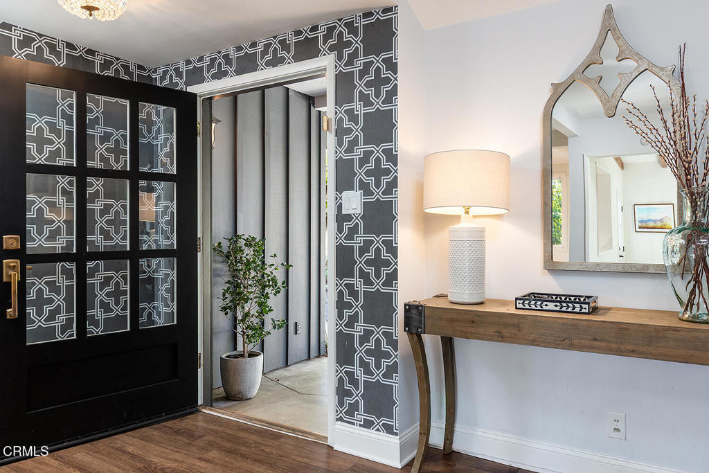 Tucked beneath enchanting deodars in La Canada Flintridge, this newly remodeled ranch-style home embraces nature at every turn. The thoughtfully designed single-level floor plan offers four bedrooms and three bathrooms, creating effortless living with a strong connection to the outdoors. At the heart of the home, the layout provides a central flow among the common gathering spaces. A warm entry opens to an inviting living room with a wood-burning fireplace, seamlessly flowing into the formal dining room. The newly redesigned kitchen features custom cabinetry, a statement range hood, high-end appliances, stone countertops, tile flooring, a farmhouse sink, designer lighting, a reverse-osmosis water filtration system, and a sunny breakfast area. A convenient den with a wood-beamed ceiling, built-in desk, and shelving offers direct access to the entertainer’s backyard. Just beyond, the primary suite is a private retreat with its own fireplace, a custom closet with skylight, and beautifully finished en-suite bathroom. Three additional bedrooms and two full bathrooms flow thoughtfully in sequence, with the newest bedroom addition opening directly to the deck. Lush, intentional landscape architecture frames the property, creating a peaceful backyard anchored by an expansive deck with a custom natural-gas fire pit, saltwater hot tub, large grassy yard, playhouse, garden, and new perimeter wood fencing. A detached two-car garage sits at the front of the property, complemented by a newly pavered driveway and low-voltage landscape lighting. Completing the home is a detached 190-square-foot office–ideal for work-from-home flexibility or a quiet retreat. This nature-forward property pairs top-quality finishes with a relaxed, indoor-outdoor California aesthetic.