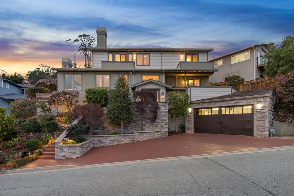 Outstanding custom-built home nestled in the coveted El Granada Highlands. This home offers 3 bedrooms plus a versatile room perfect for a den or office, and 3.5 bathrooms across 2,640+/- sqft of luxurious space on a 6,053+/- sqft lot. Enjoy breathtaking ocean and harbor views from the open-concept great room and all bedrooms, each featuring private decks. The great room boasts vaulted ceilings and a step-down living area with a cozy fireplace, complemented by radiant heated walnut floors and abundant natural light. The chef’s kitchen is a culinary dream, complete with a temperature-controlled walk-in pantry and built-in wine racks. A separate media room provides an ideal entertainment space. The downstairs bedroom includes an ensuite bathroom, while the upstairs primary suite features a fireplace, a cedar-lined walk-in closet with organizers, a 10-jet shower and a built-in Miele espresso machine. Additional amenities include a two-car attached garage with storage and an EV charger, skylights, and a private backyard. This coastal retreat offers easy access to Hwy 1 for all your Bay Area commutes and is a short distance from the beach, coastal trail and Pillar Point Harbor’s shopping and acclaimed restaurants. This home is a perfect blend of modern luxury and convenience.